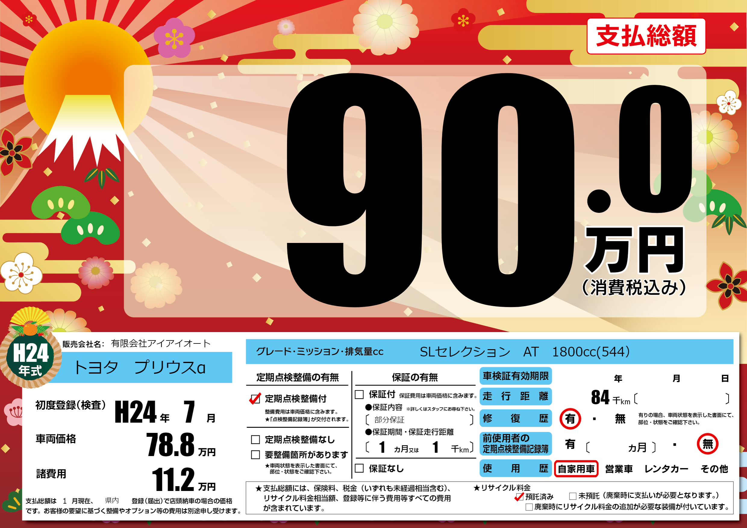 | 車名 | トヨタ プリウスα | グレード ミッション 排気量 |