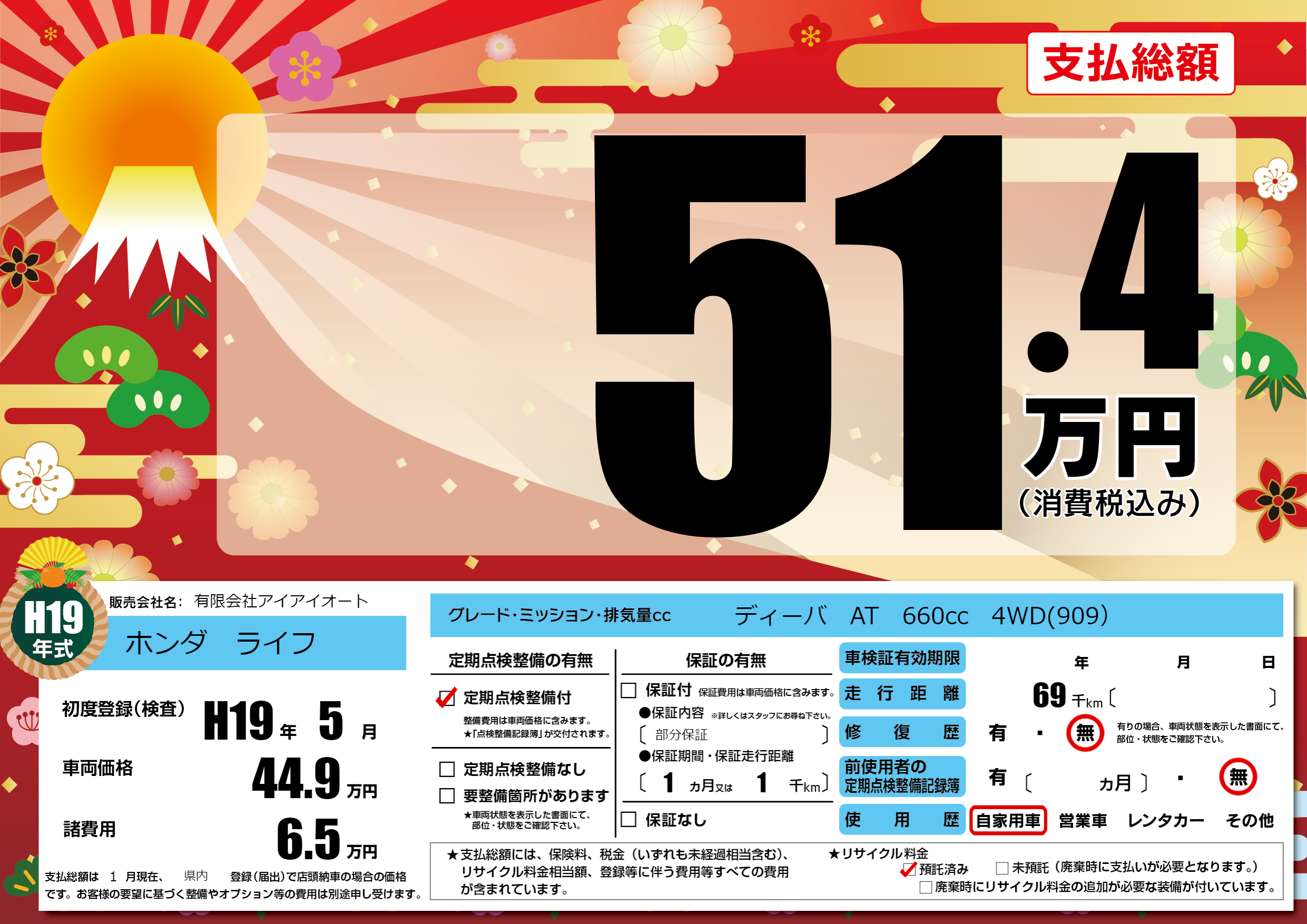 | 車名 | ホンダ ライフ | グレード ミッション 排気量 |
