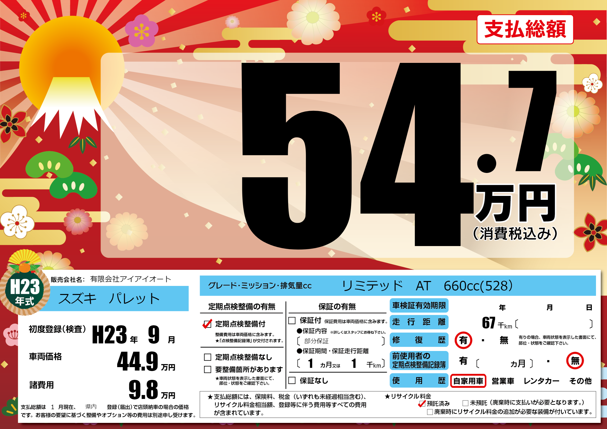 | 車名 | スズキ パレット | グレード ミッション 排気量 |