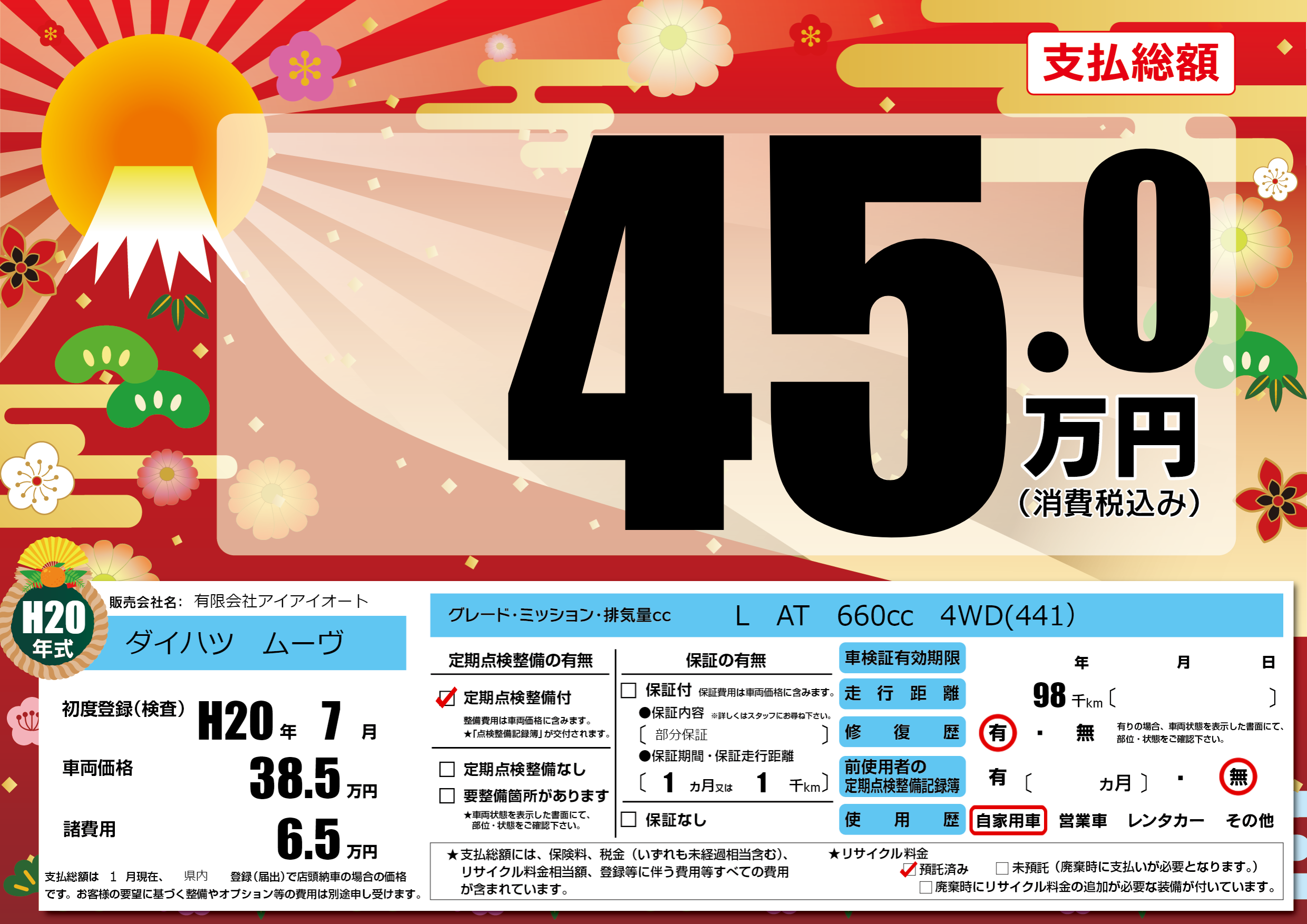 | 車名 | ダイハツ ムーヴ | グレード ミッション 排気量 |