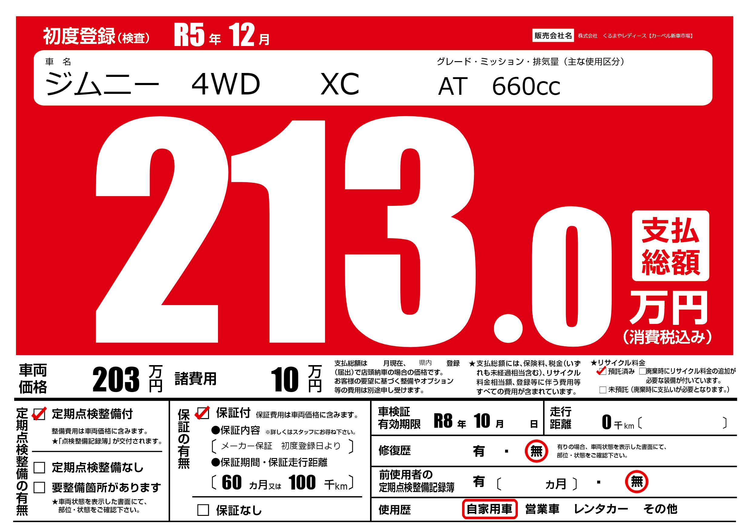 | 走行キロ | - | 初年度登録 | R5年12月 |