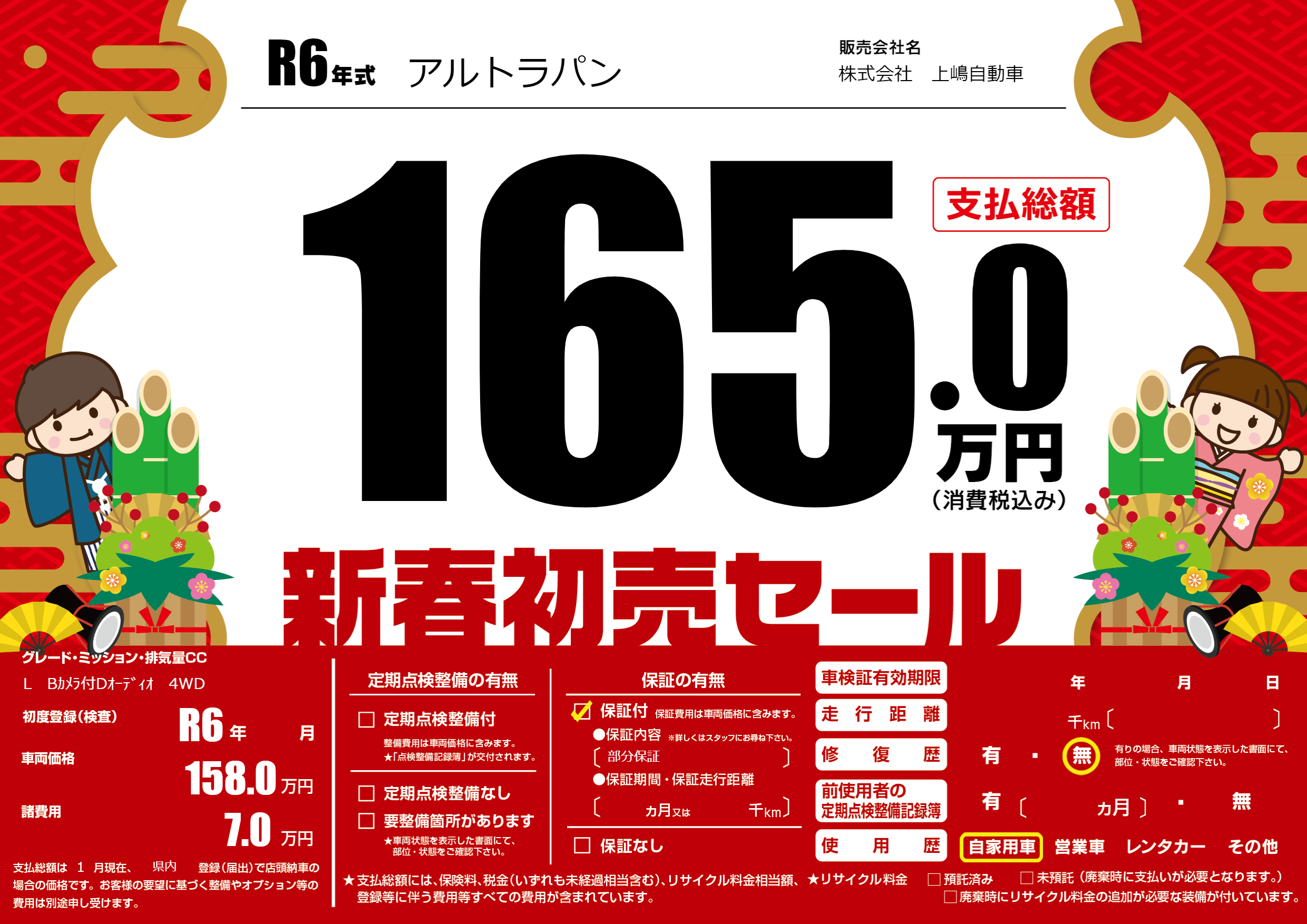 保証付き 保証内容(部分保証) ---ヶ月または()千kmまで |