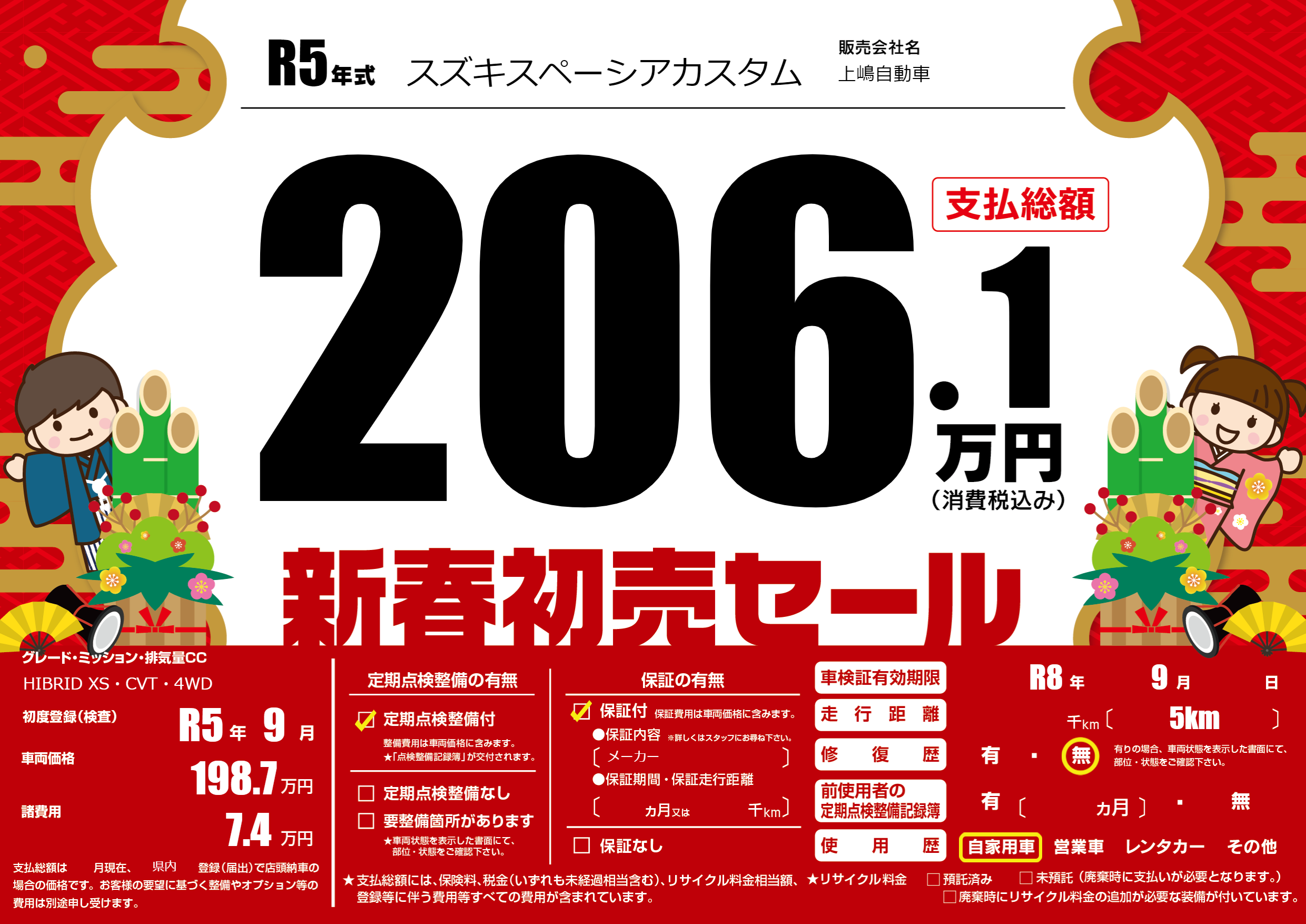 | 走行キロ | - | 初年度登録 | R5年9月 |
