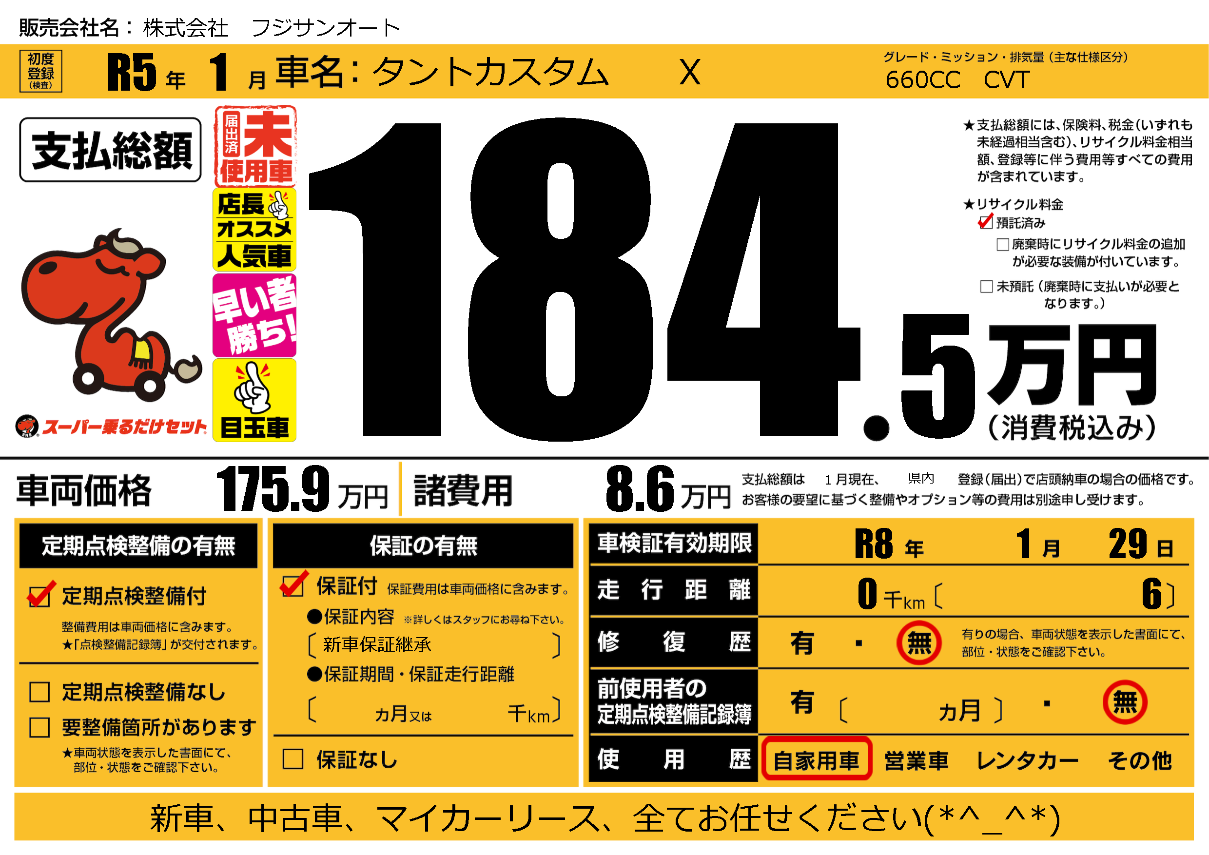 | 車名 | タントカスタム X | グレード ミッション 排気量 |
