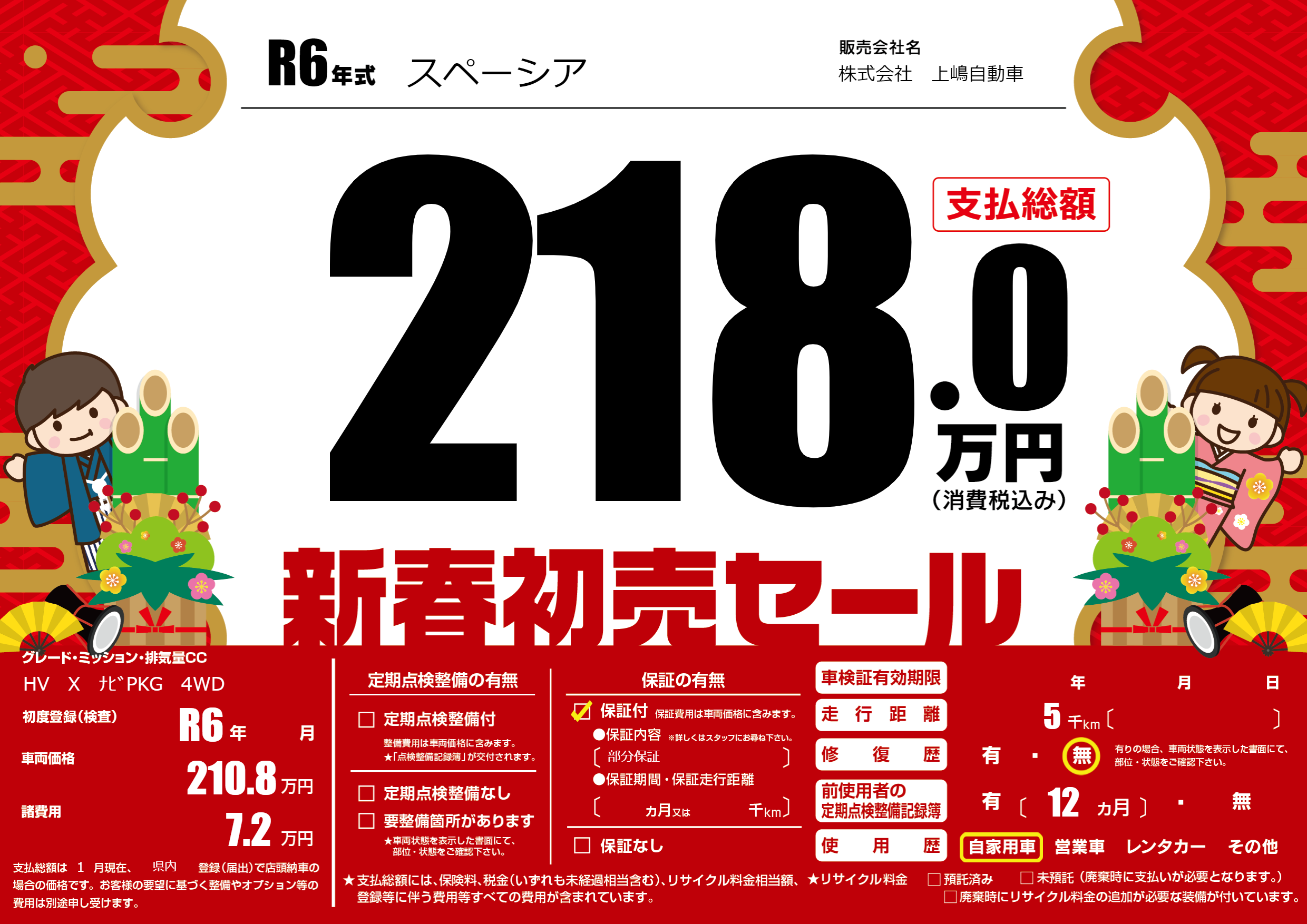 | 車名 | スペーシア | グレード ミッション 排気量 |