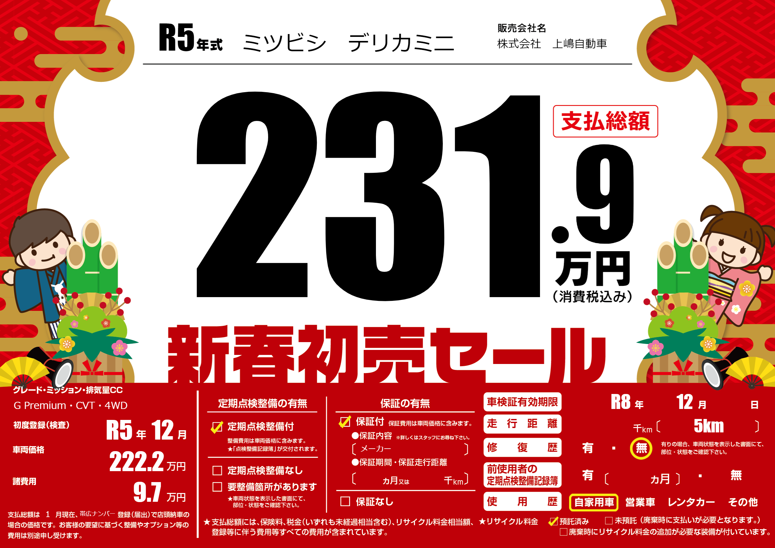 | 走行キロ | - | 初年度登録 | R5年12月 |