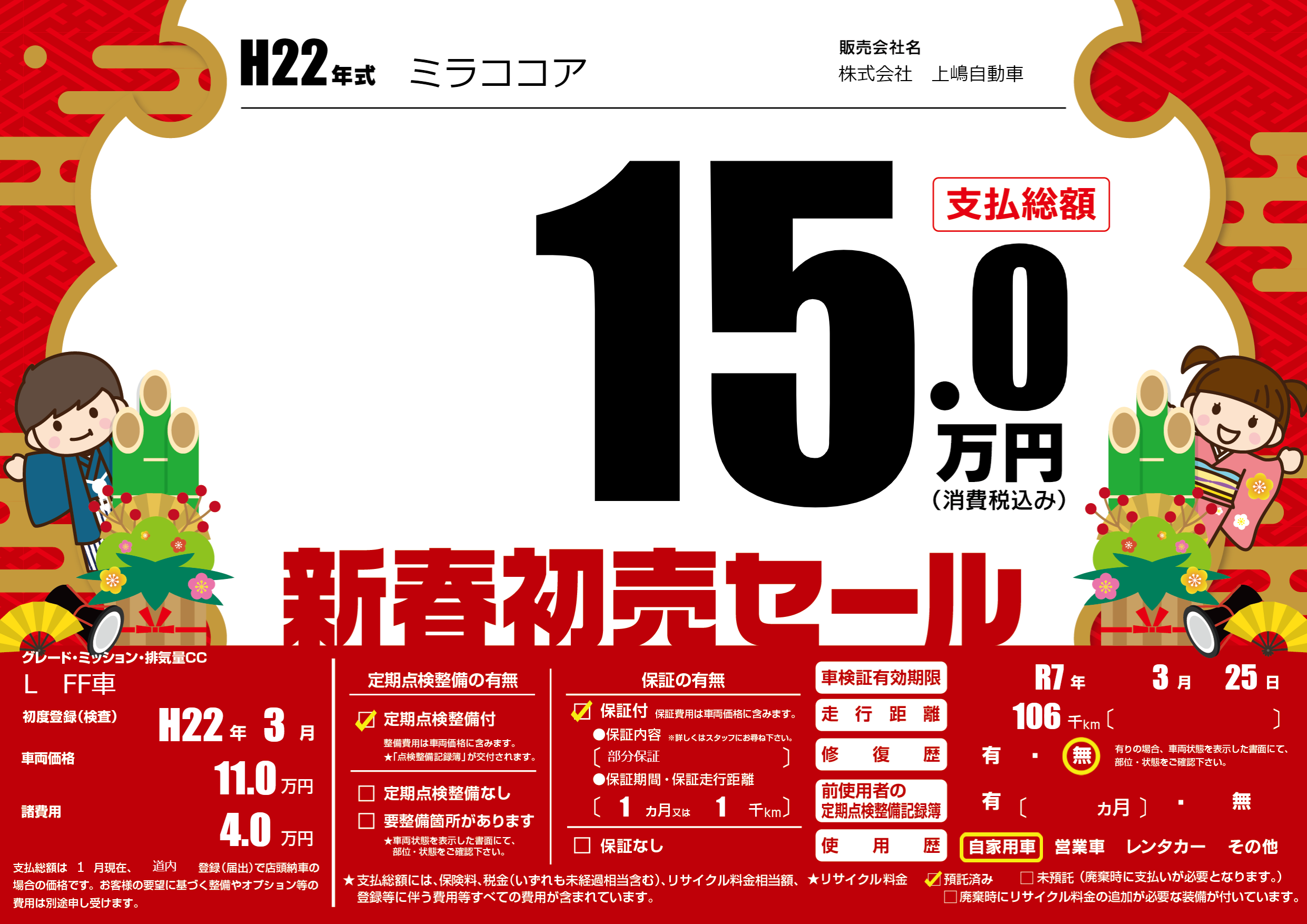 | 走行キロ | 10.6万km | 初年度登録 | H22年3月 |