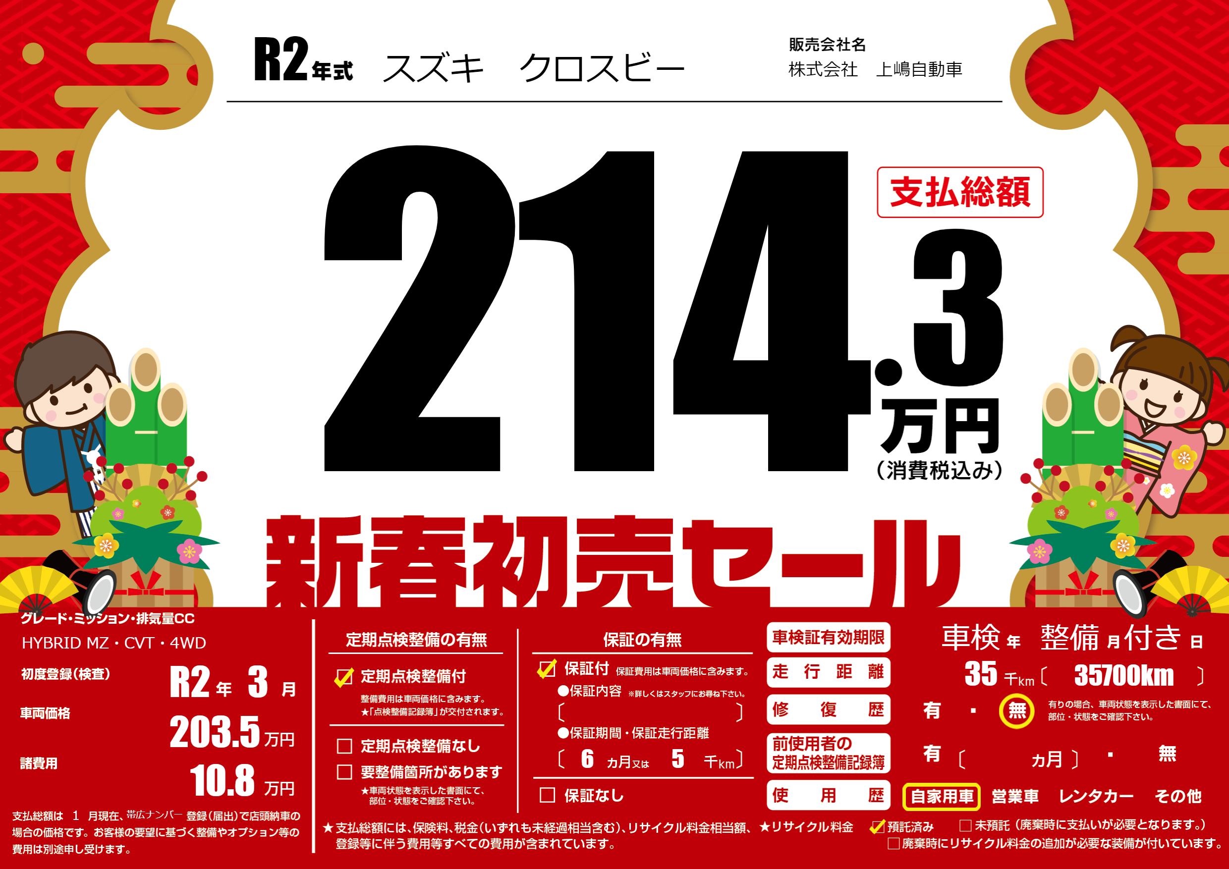 保証付き 保証内容(---) 6ヶ月または(5)千kmまで |
