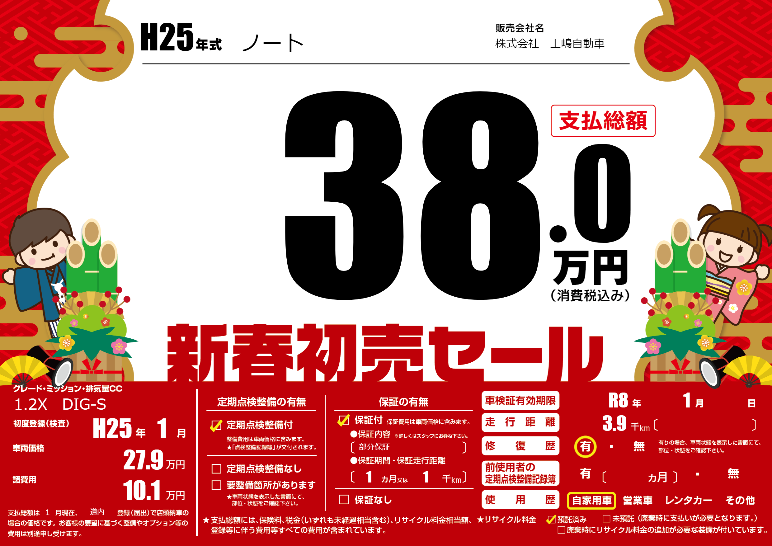 | 車検制限 | R8年 1月 - 日 | ||