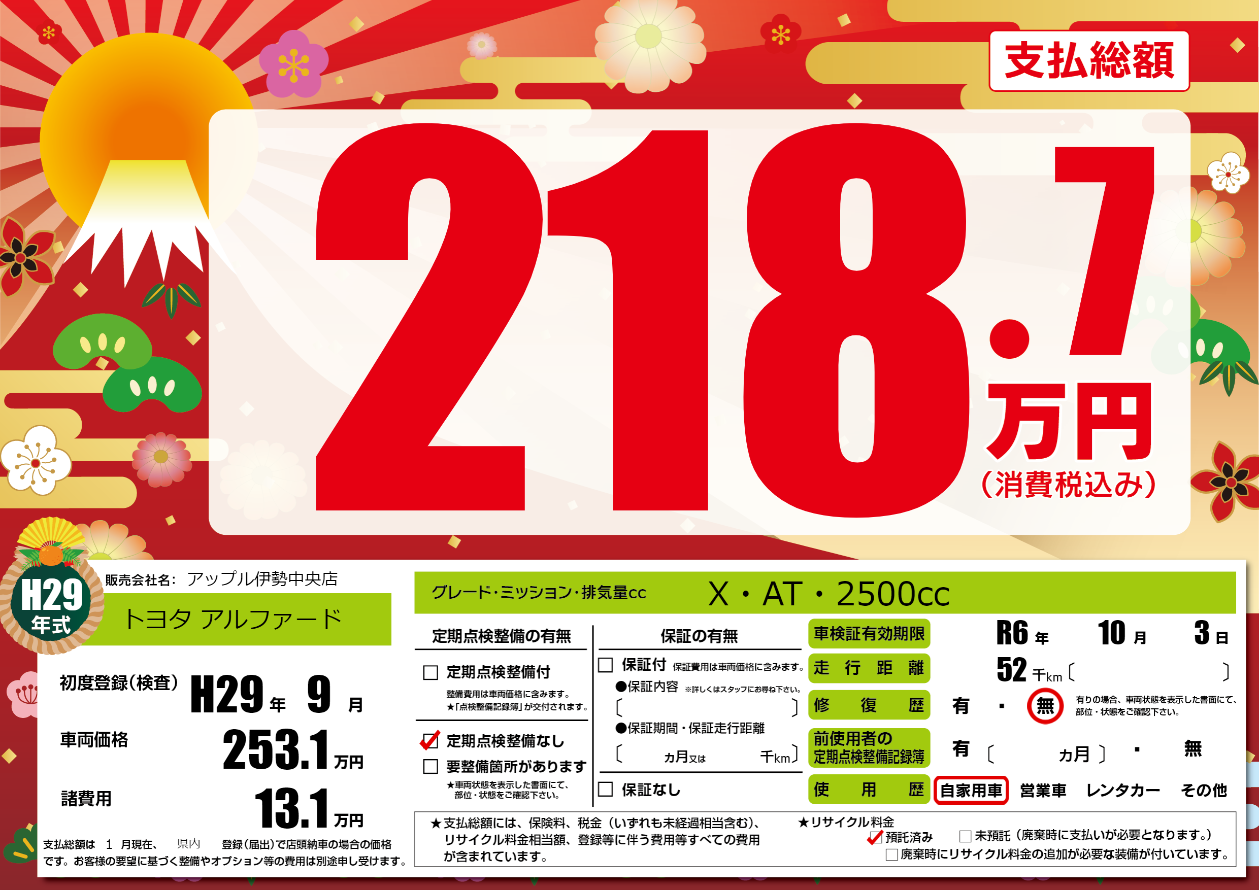 | 車名 | トヨタ アルファード | グレード ミッション 排気量 |