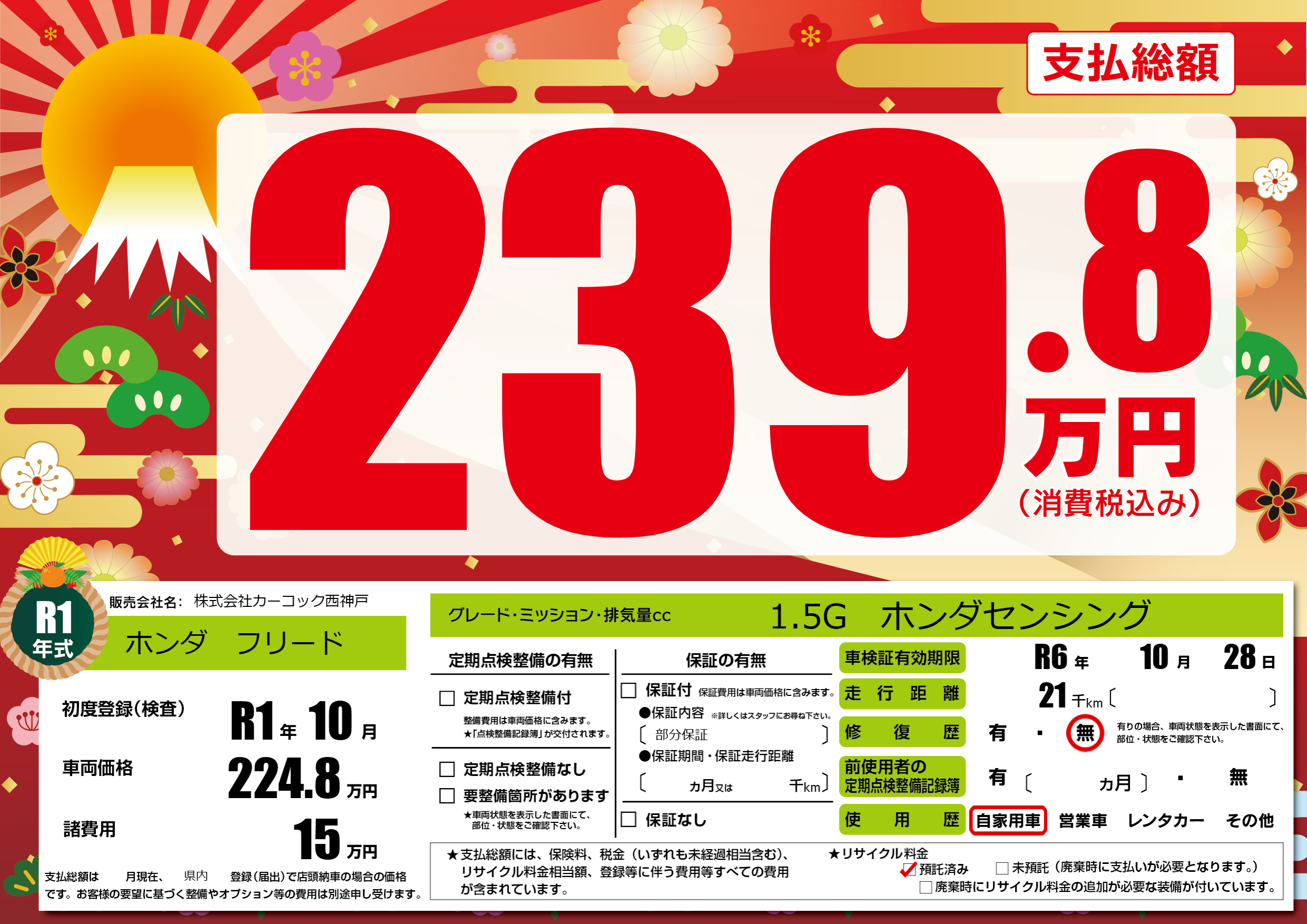 | 車名 | ホンダ フリード | グレード ミッション 排気量 |