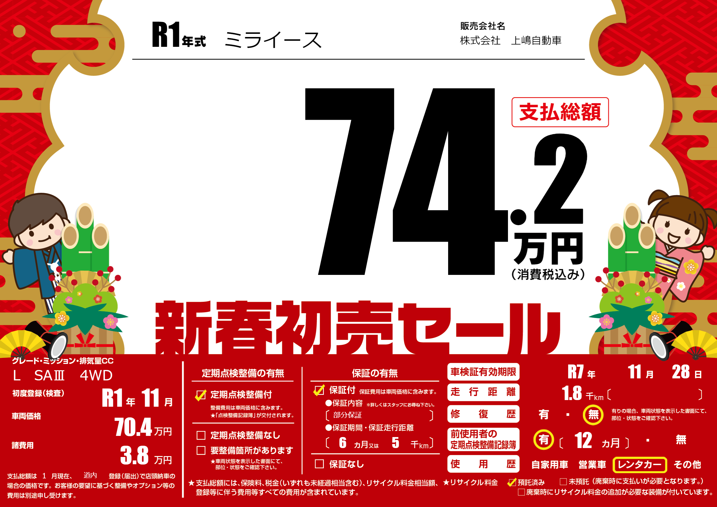 | 車名 | ミライース | グレード ミッション 排気量 |