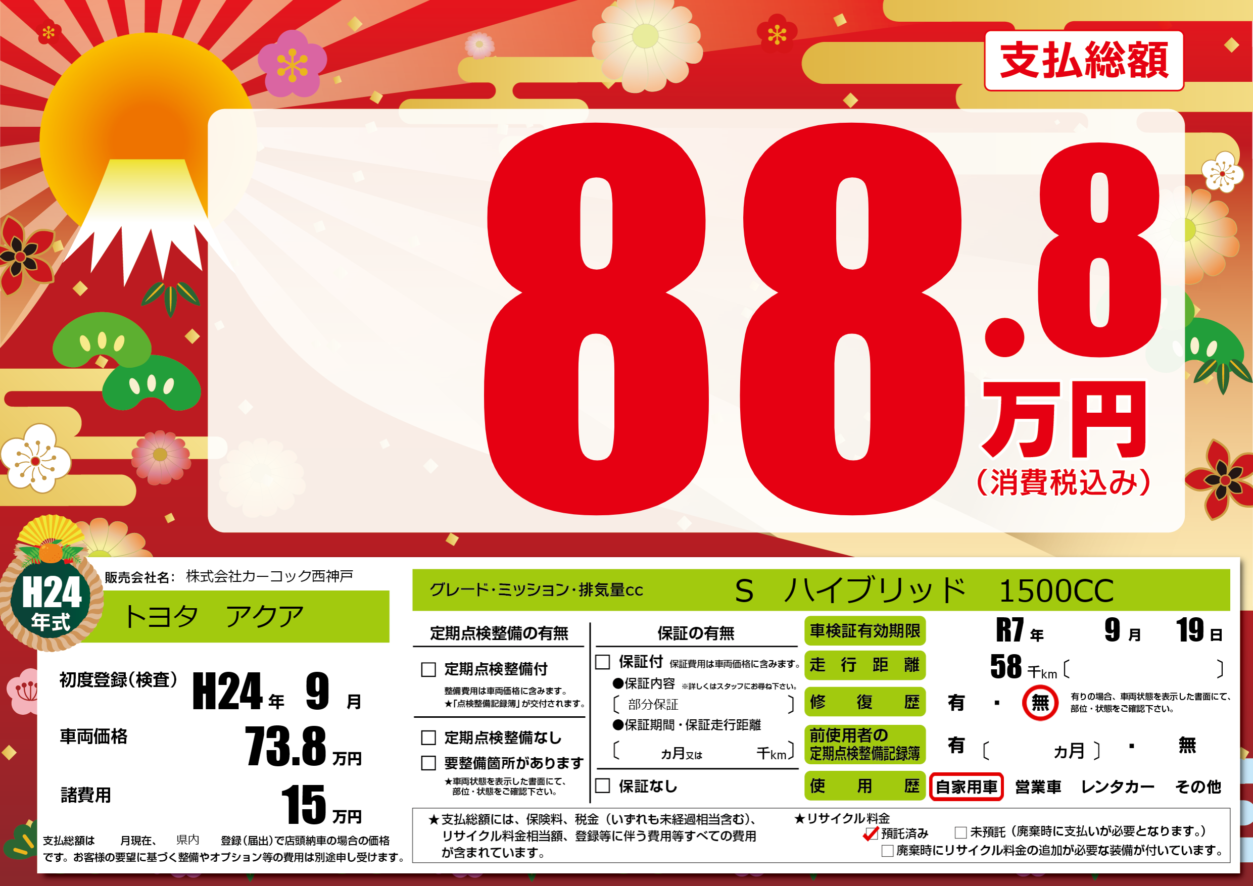 | 走行キロ | 5.8万km | 初年度登録 | H24年9月 |