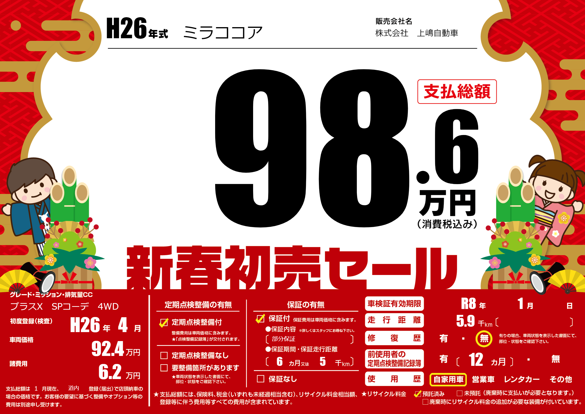 | 車名 | ミラココア | グレード ミッション 排気量 |