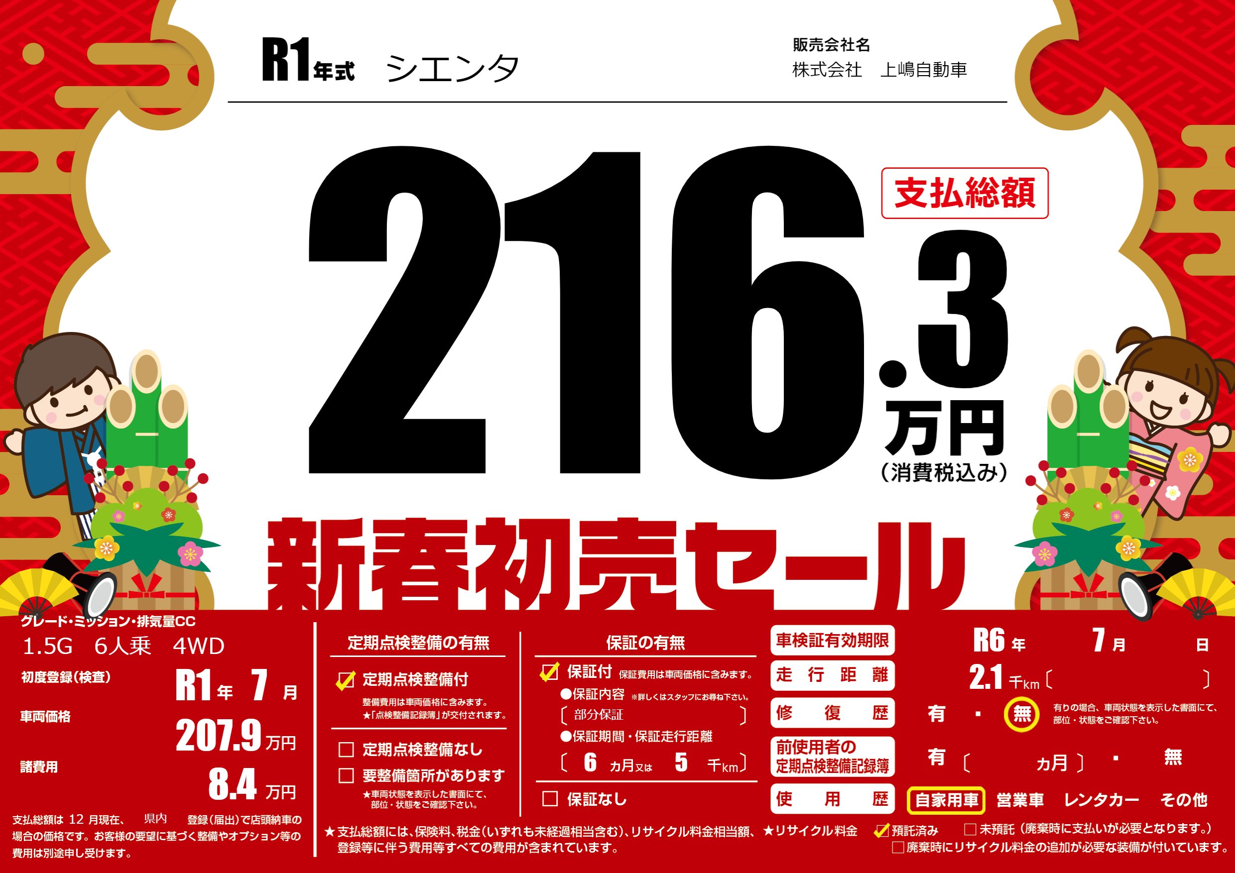 | 車名 | シエンタ | グレード ミッション 排気量 |