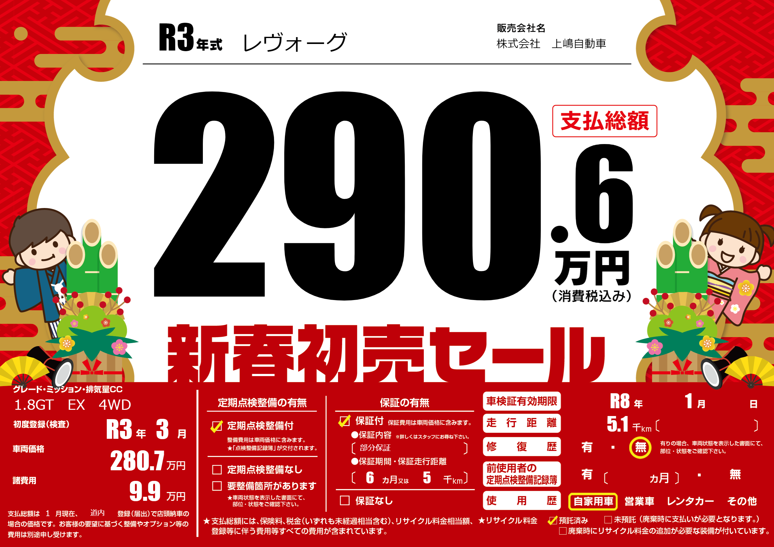 | 車名 | レヴォーグ | グレード ミッション 排気量 |