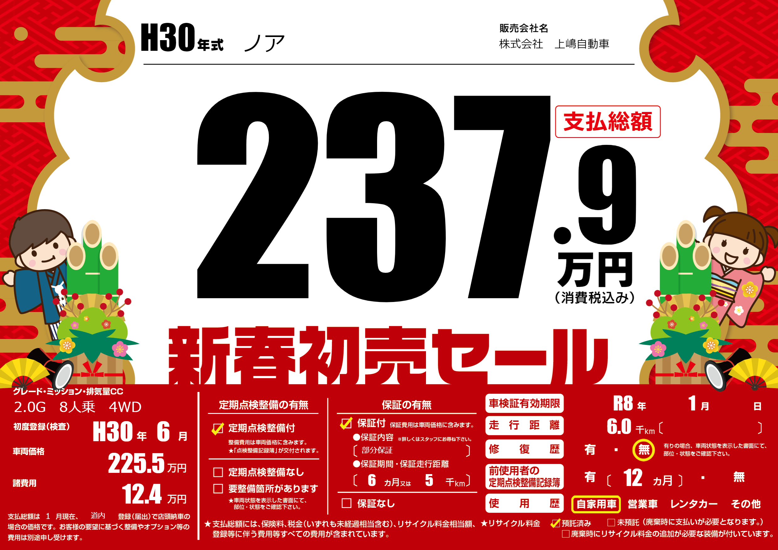 | 走行キロ | 0.6万km | 初年度登録 | H30年6月 |