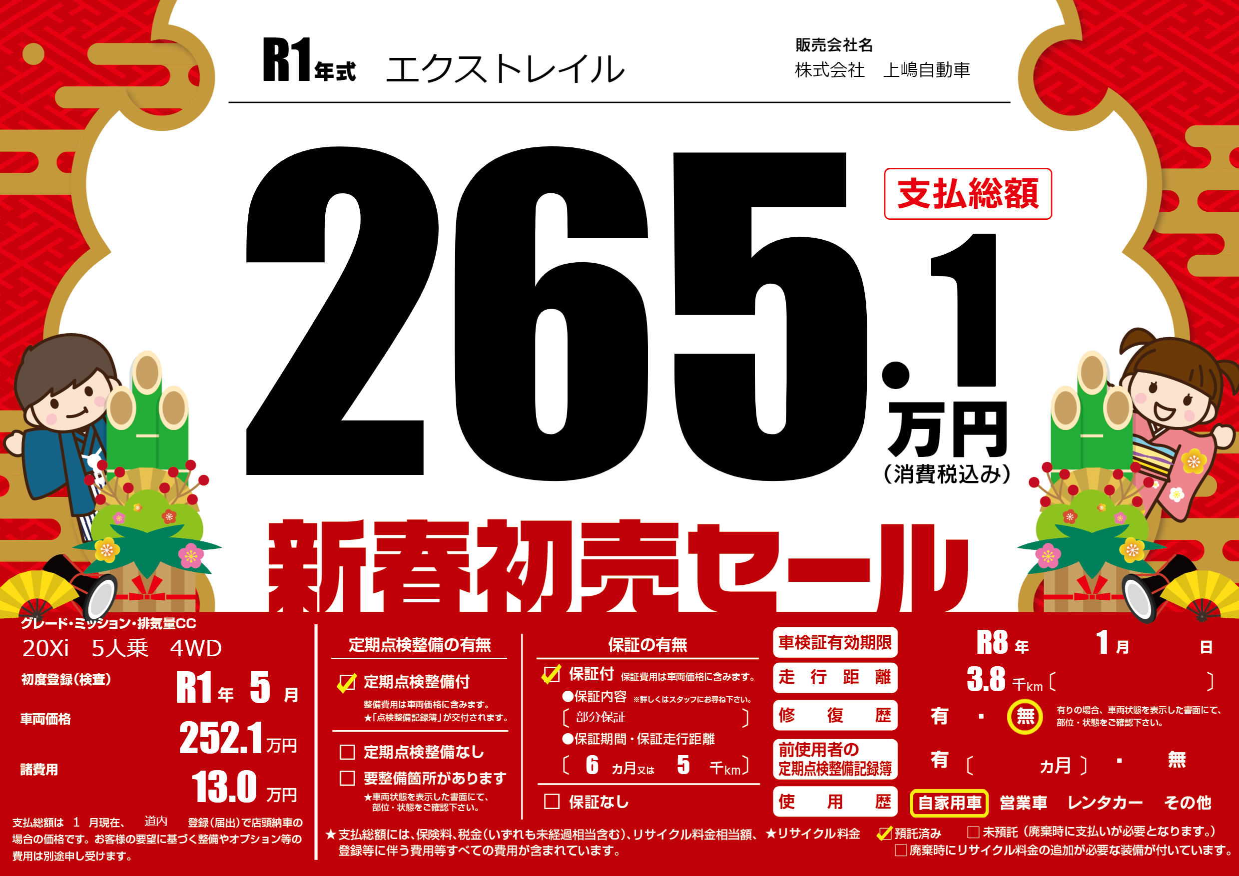 | 車名 | エクストレイル | グレード ミッション 排気量 |