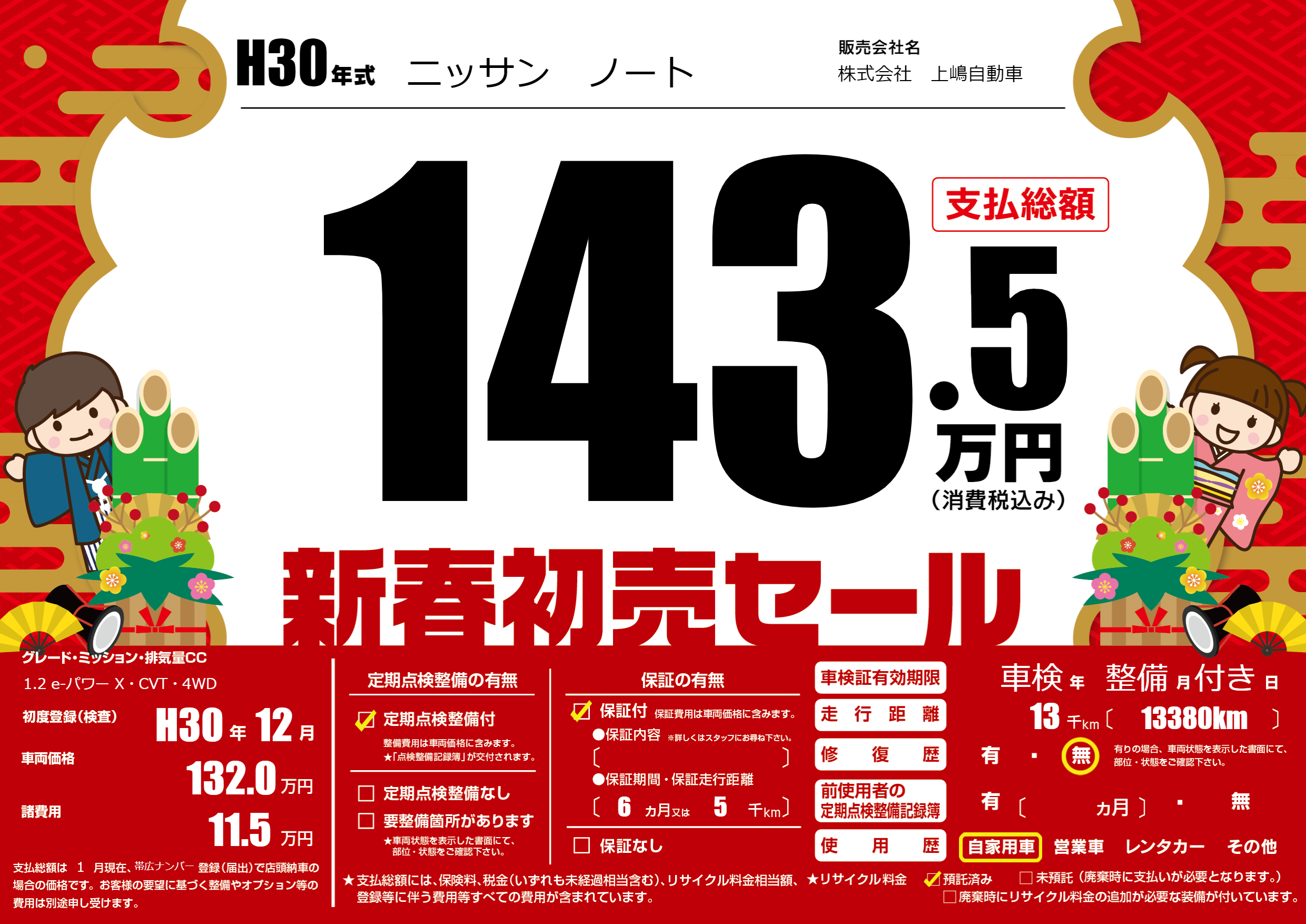 | 車名 | ニッサン ノート | グレード ミッション 排気量 |