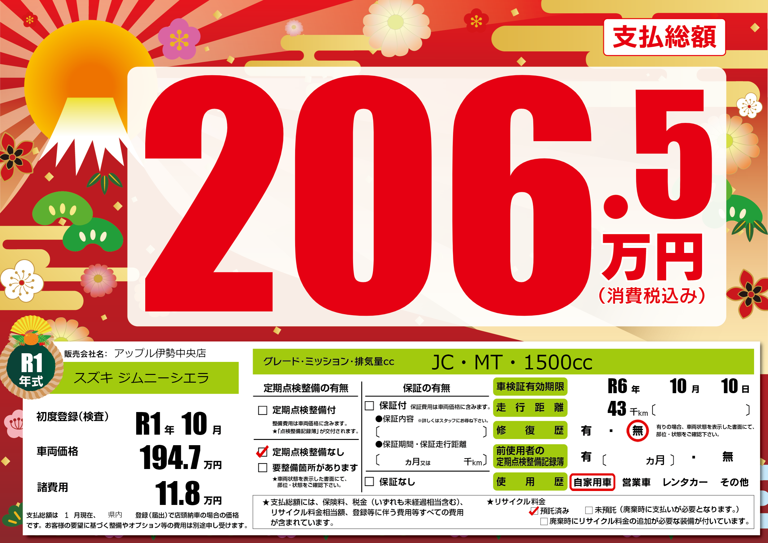 | 車名 | スズキ ジムニーシエラ | グレード ミッション 排気量 |