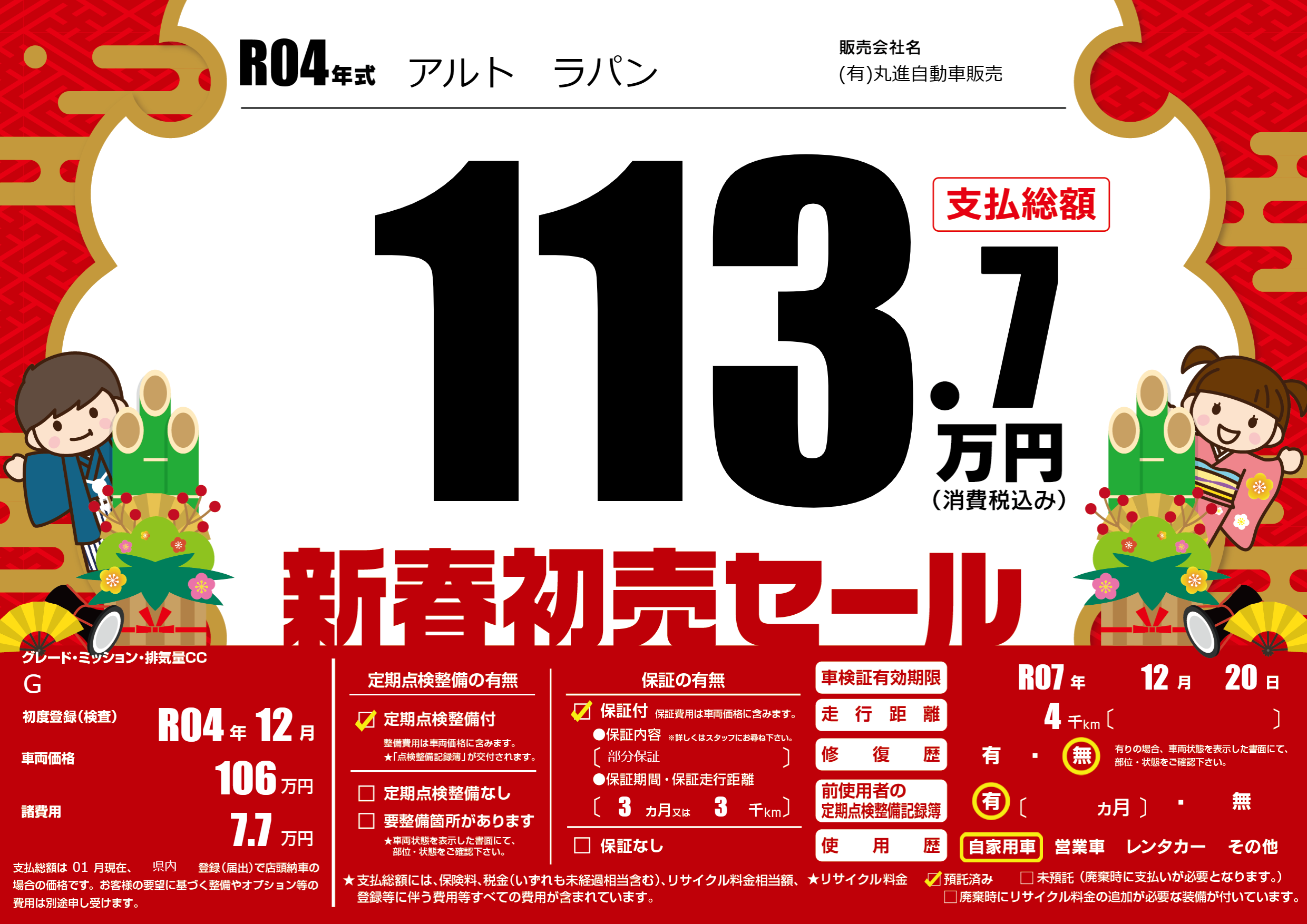 | 車名 | アルト ラパン | グレード ミッション 排気量 |