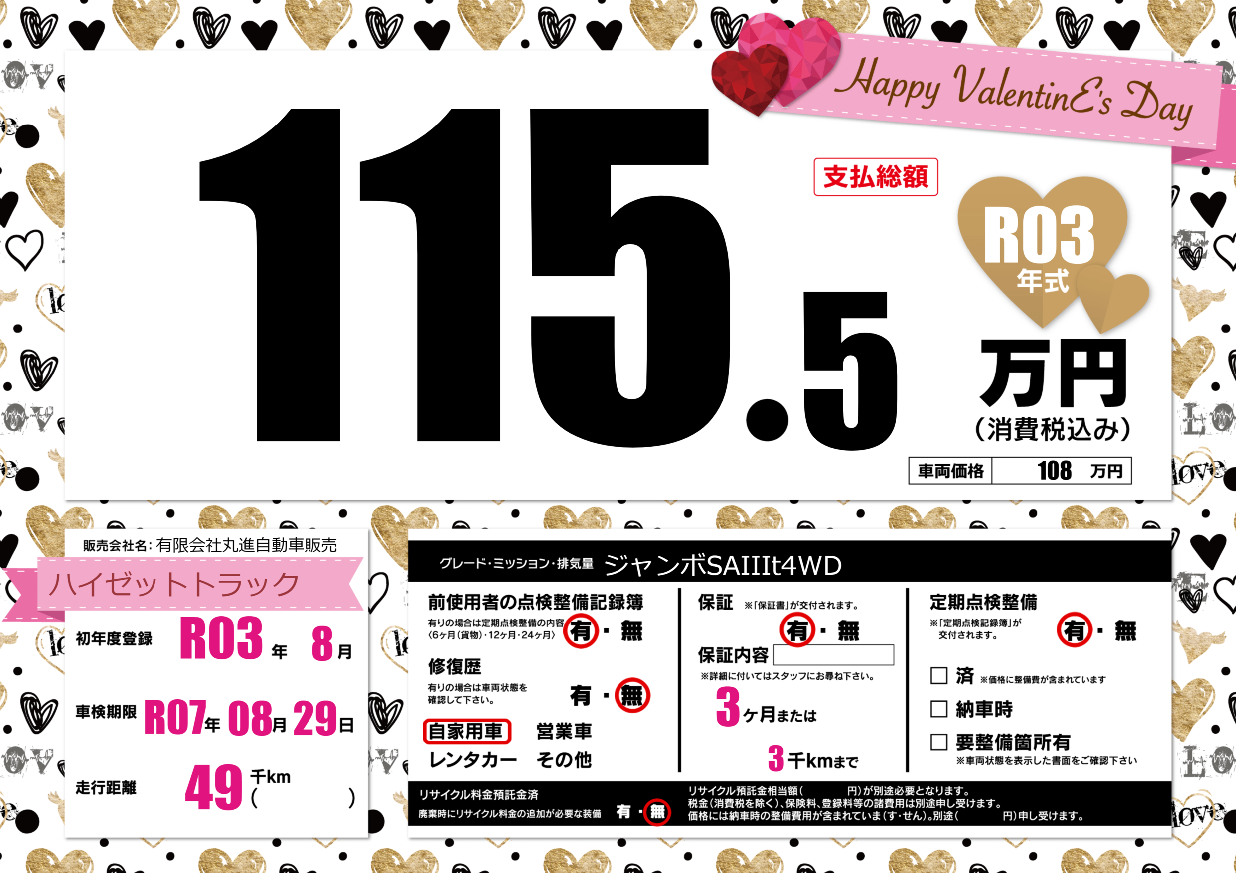 | 車名 | ハイゼットトラック | グレード ミッション 排気量 |