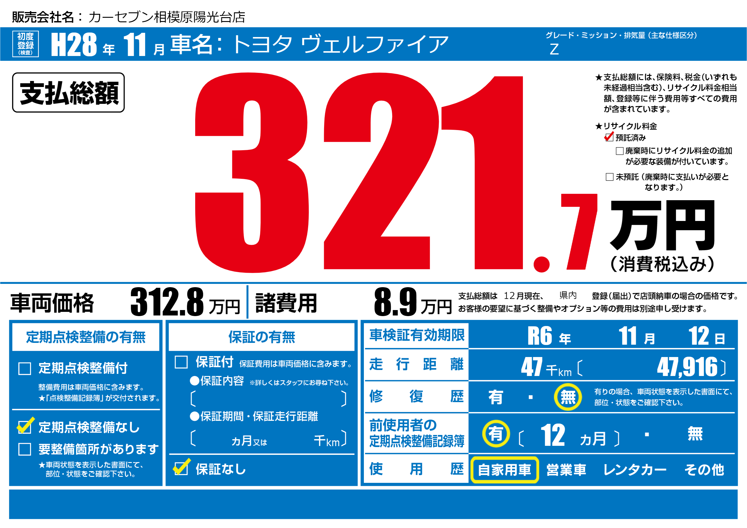 なし | 車検制限 | R6年11月12月 |