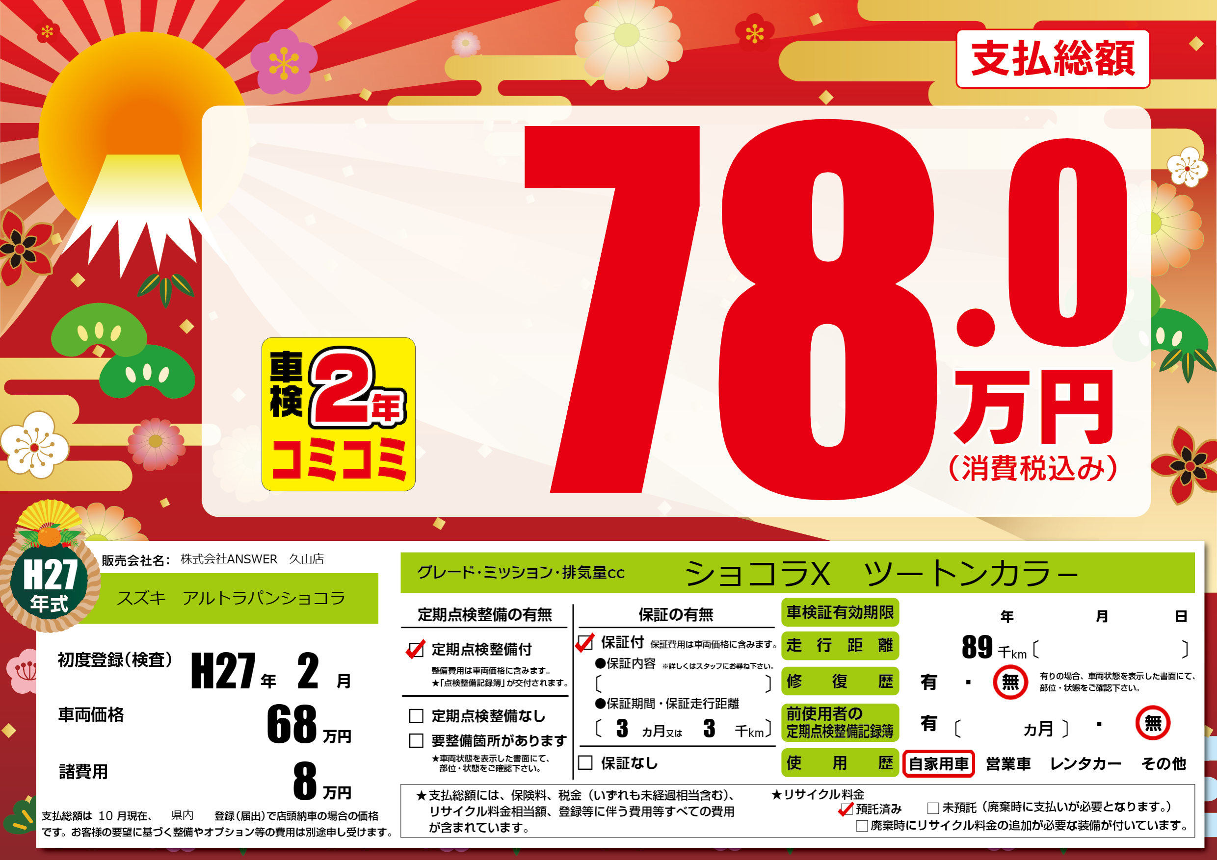 | 初年度登録 | H27年2月 | ||