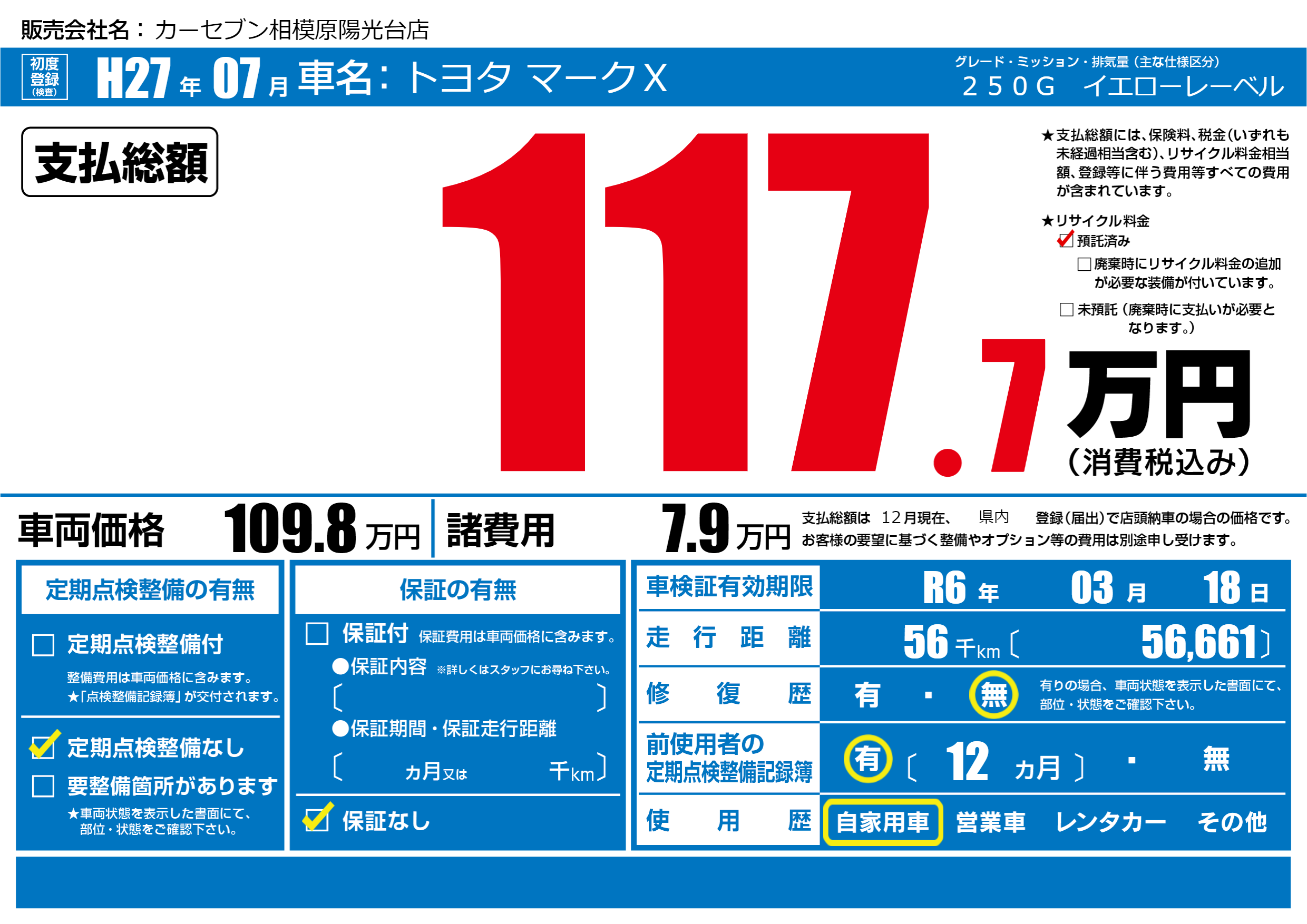 なし | 車検制限 | R6年03月18月 |