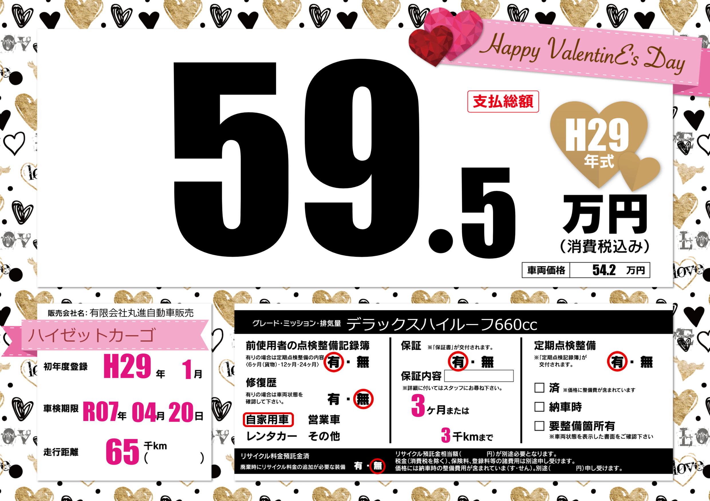 | 走行キロ | 6.5万km | 初年度登録 | H29年1月 |