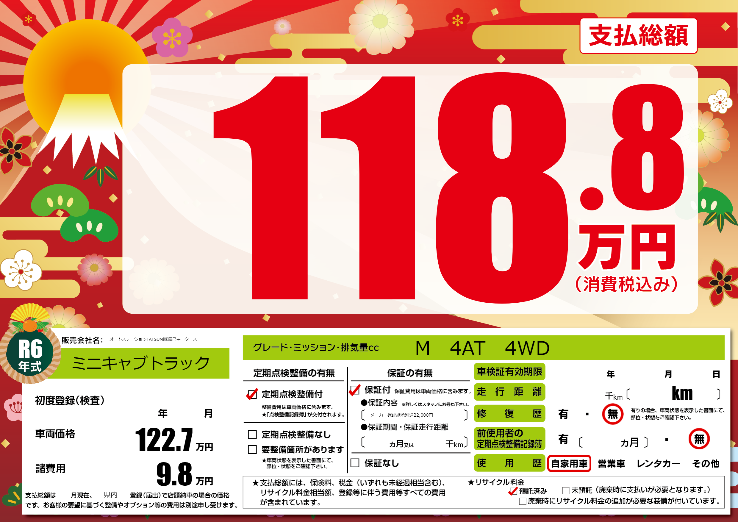 | 車名 | ミニキャブトラック | グレード ミッション 排気量 |