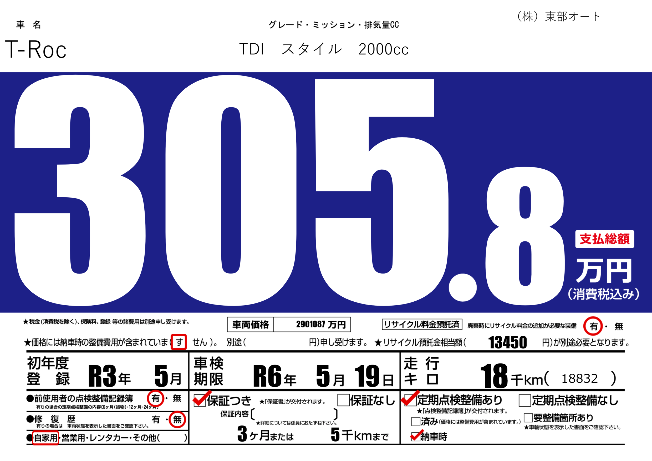 | 車名 | T-Roc | グレード ミッション 排気量 |