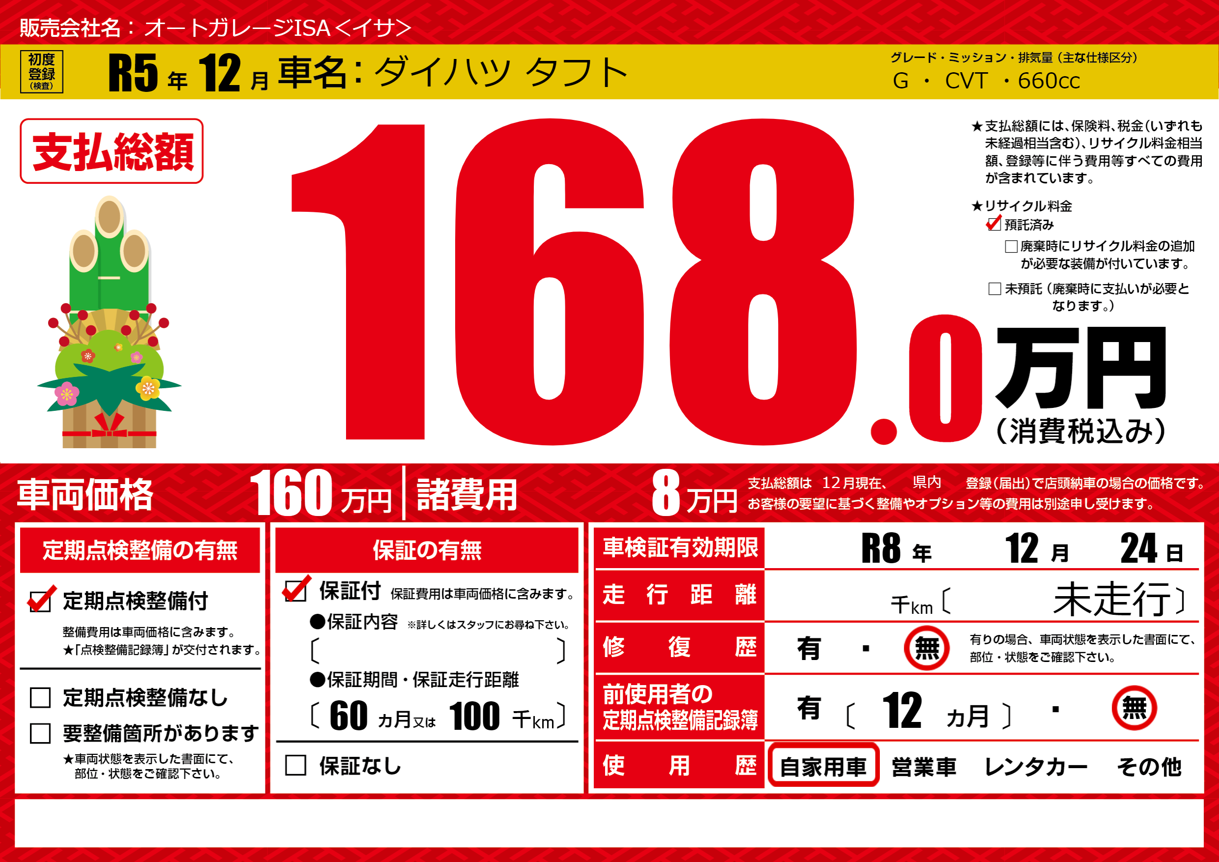 | 走行キロ | - | 初年度登録 | R5年12月 |