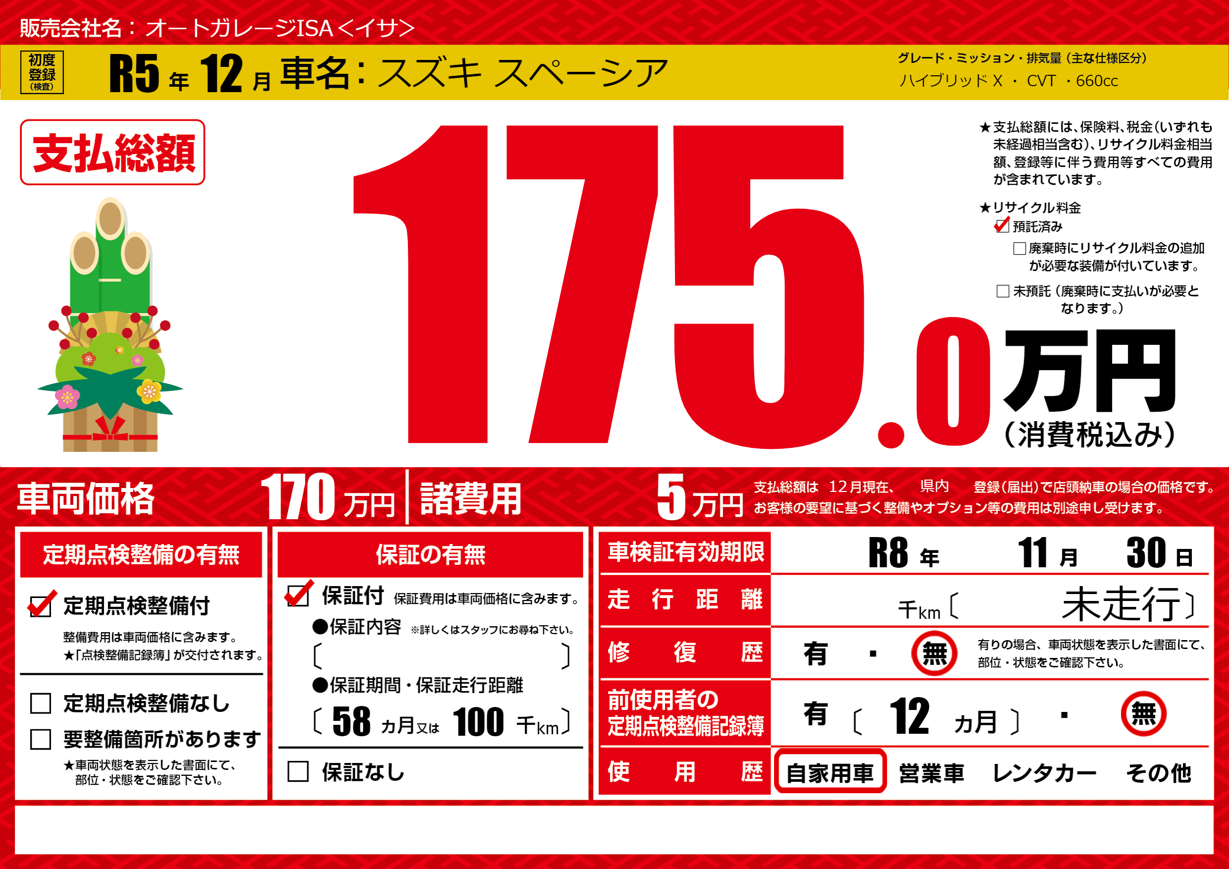 なし | 車検制限 | R8年11月30月 |