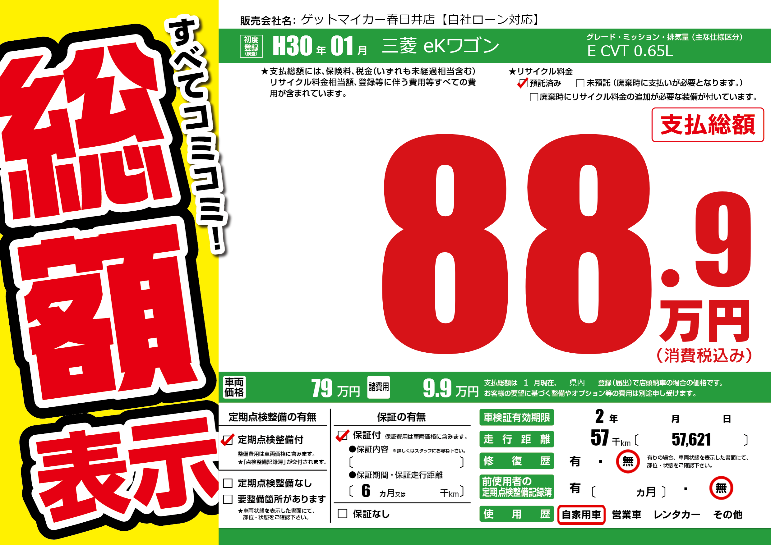 なし | 車検制限 | 2年---月---月 |