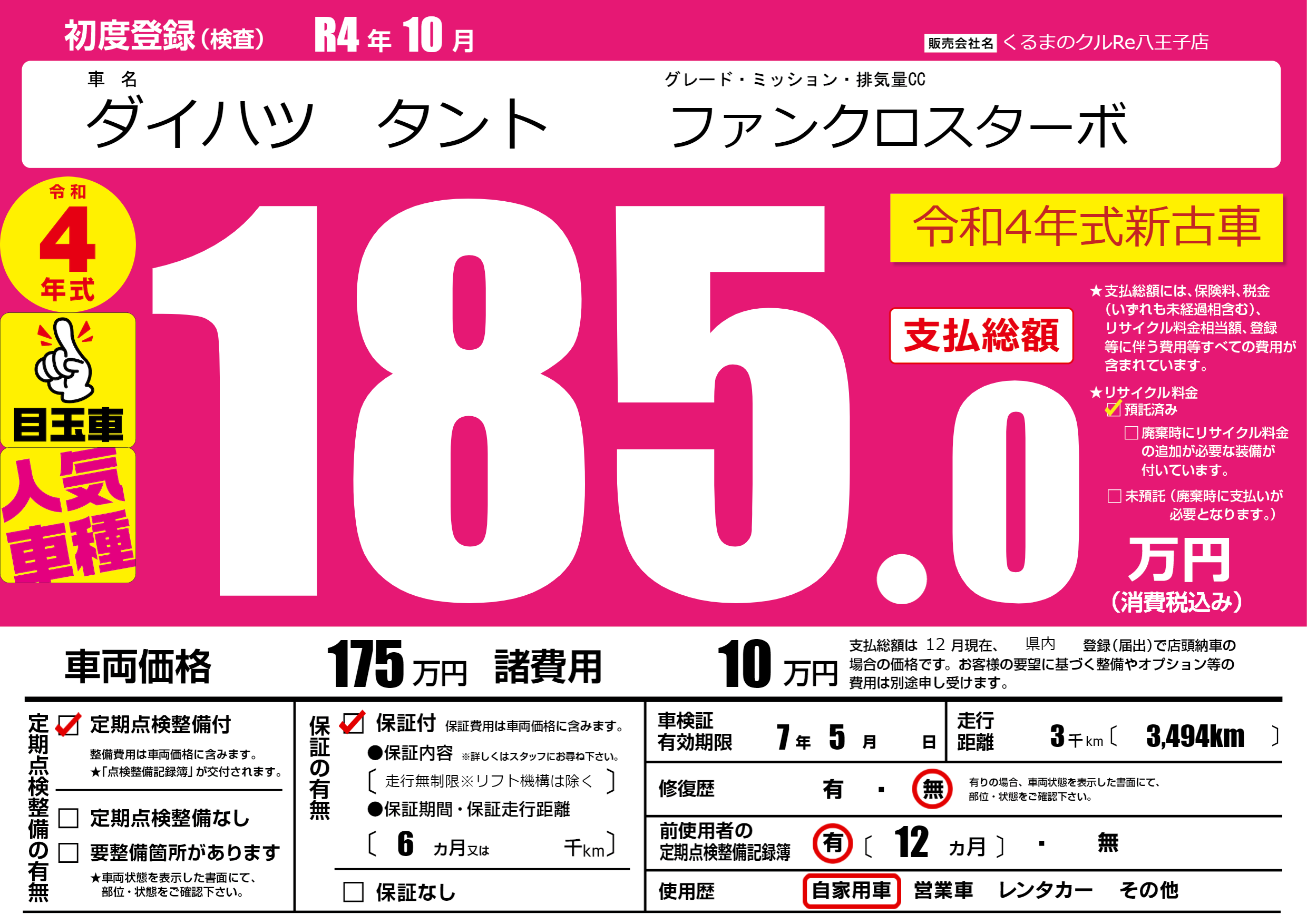| 初年度登録 | R4年10月 | ||