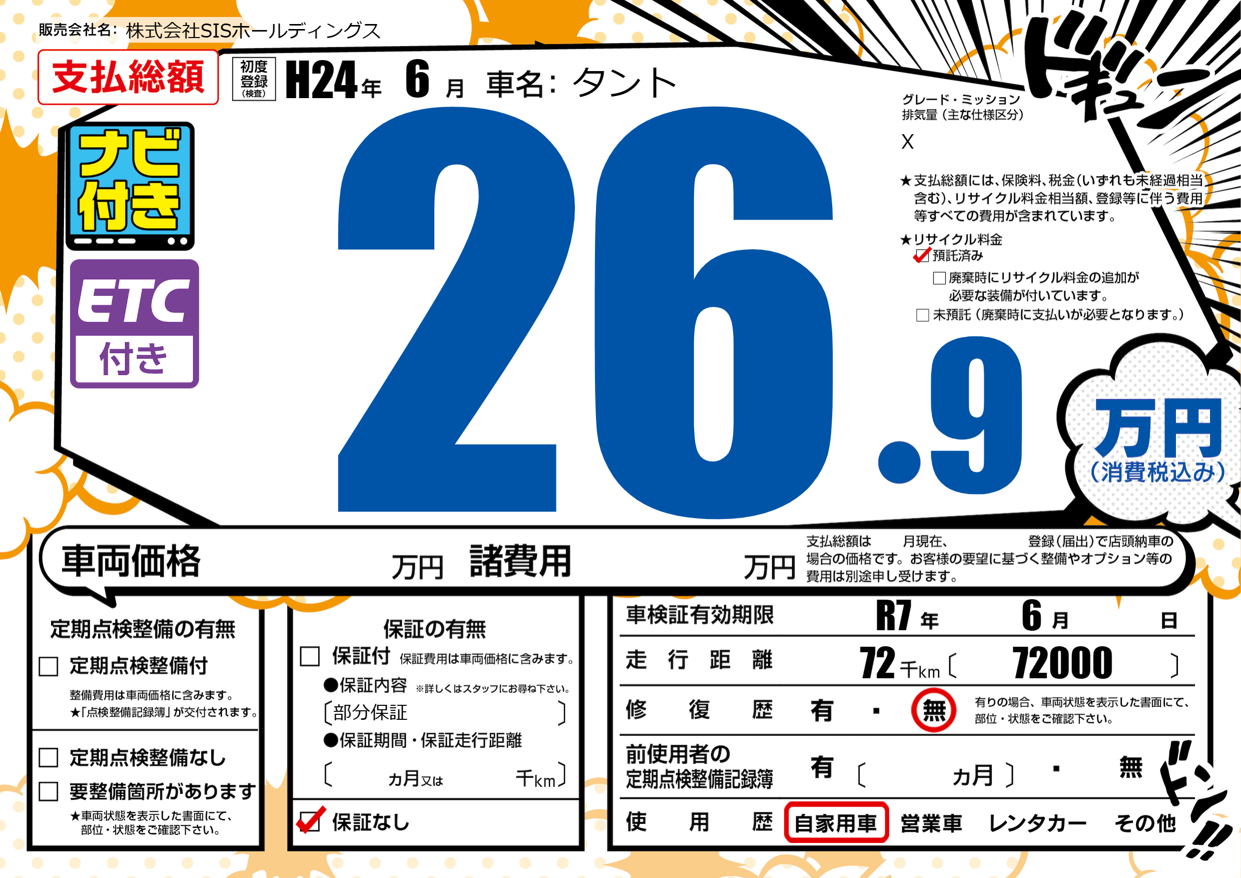 | 走行キロ | 7.2万km | 初年度登録 | H24年6月 |