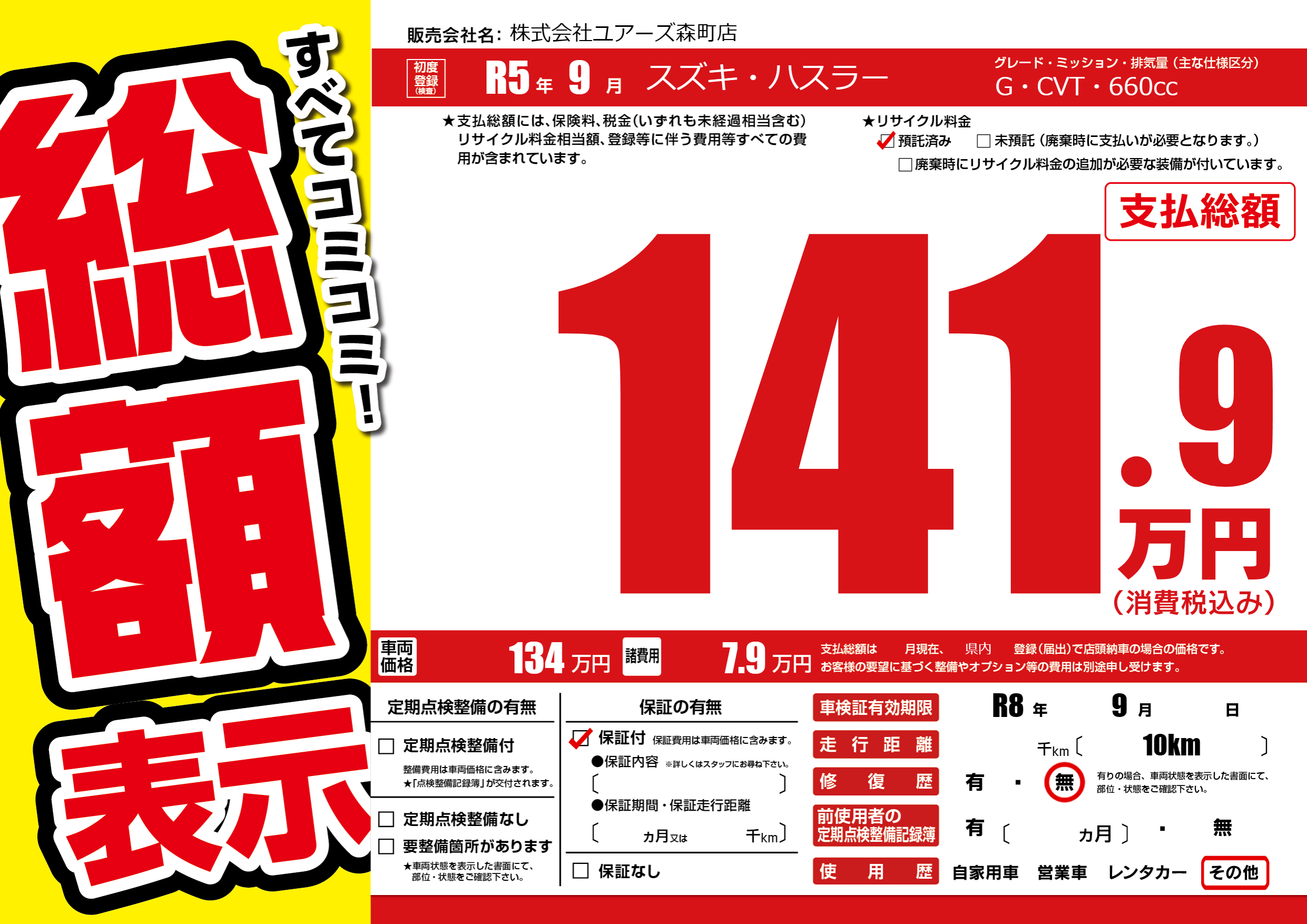 なし | 車検制限 | R8年9月---月 |