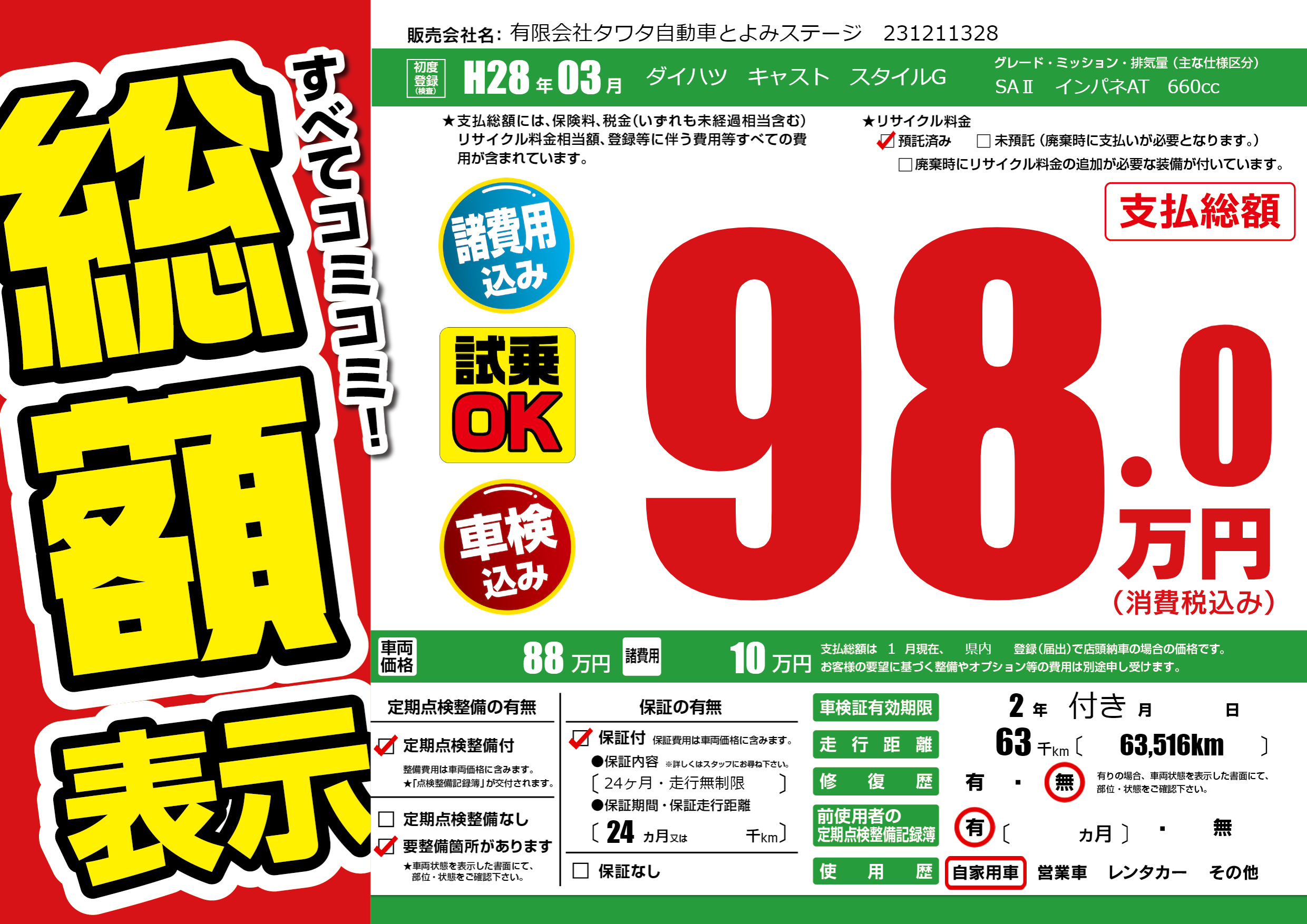 | 定期点検整備 | 定期点検整備あり 要整備箇所あり | ||