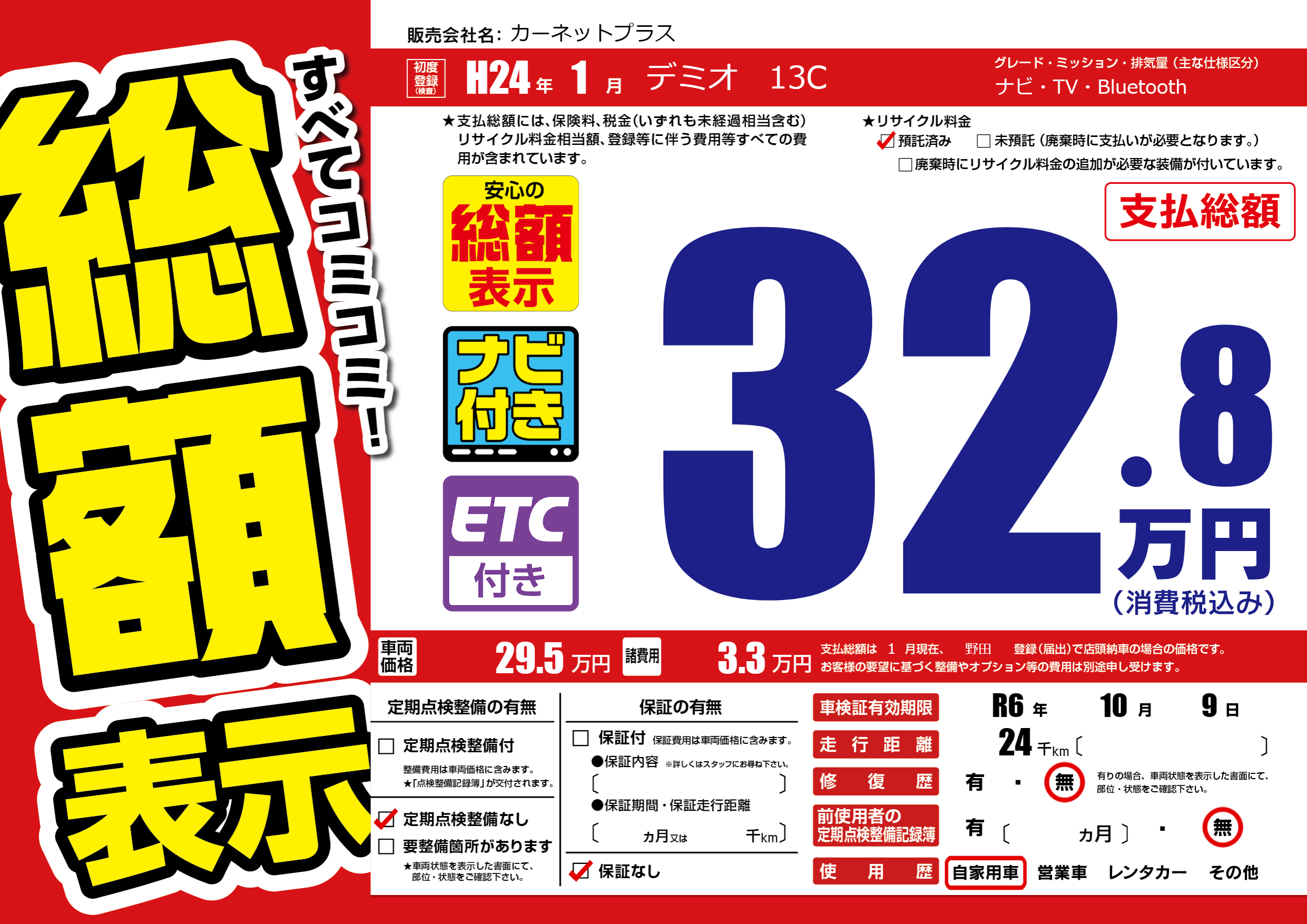 | 車名 | デミオ 13C | グレード ミッション 排気量 |