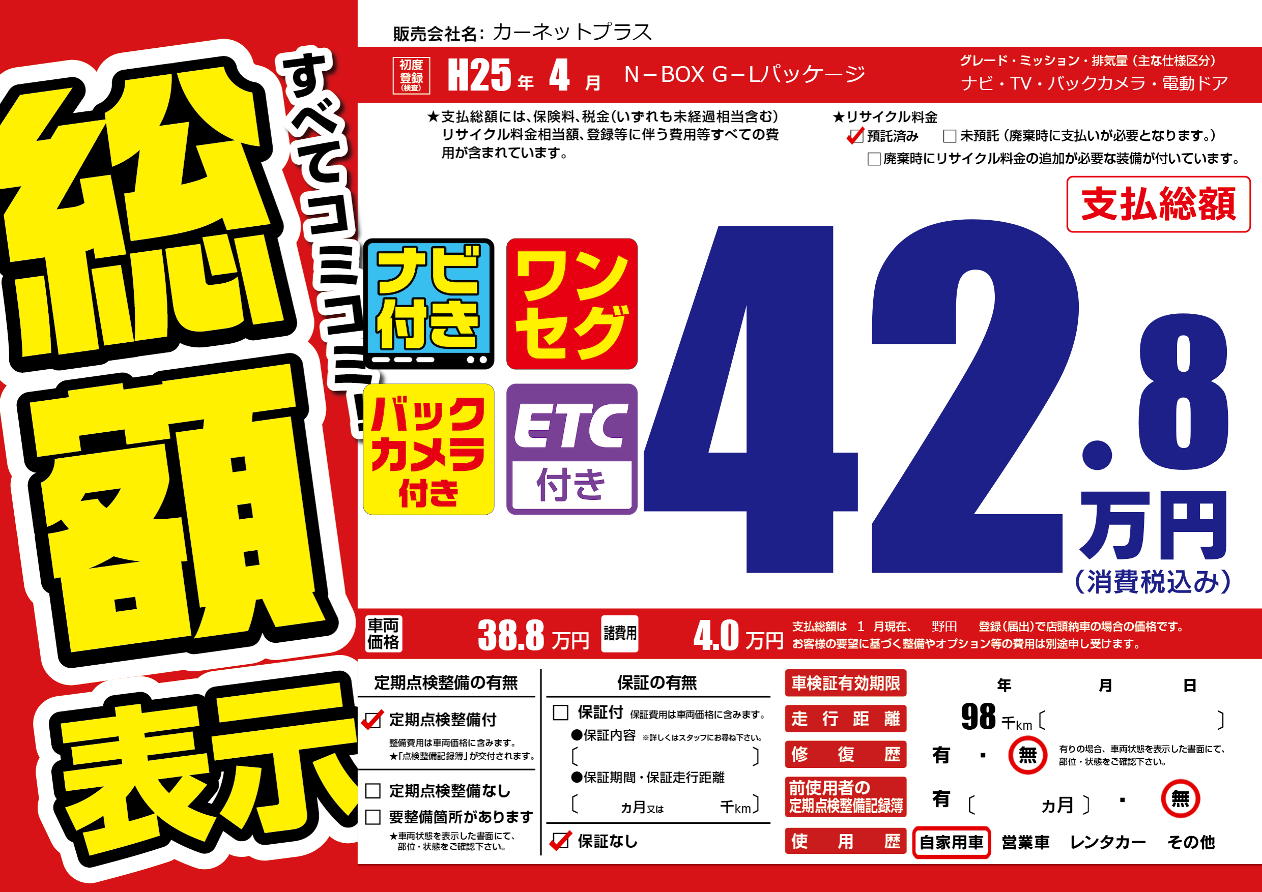 | 車検制限 | - 年 - 月 - 日 | ||