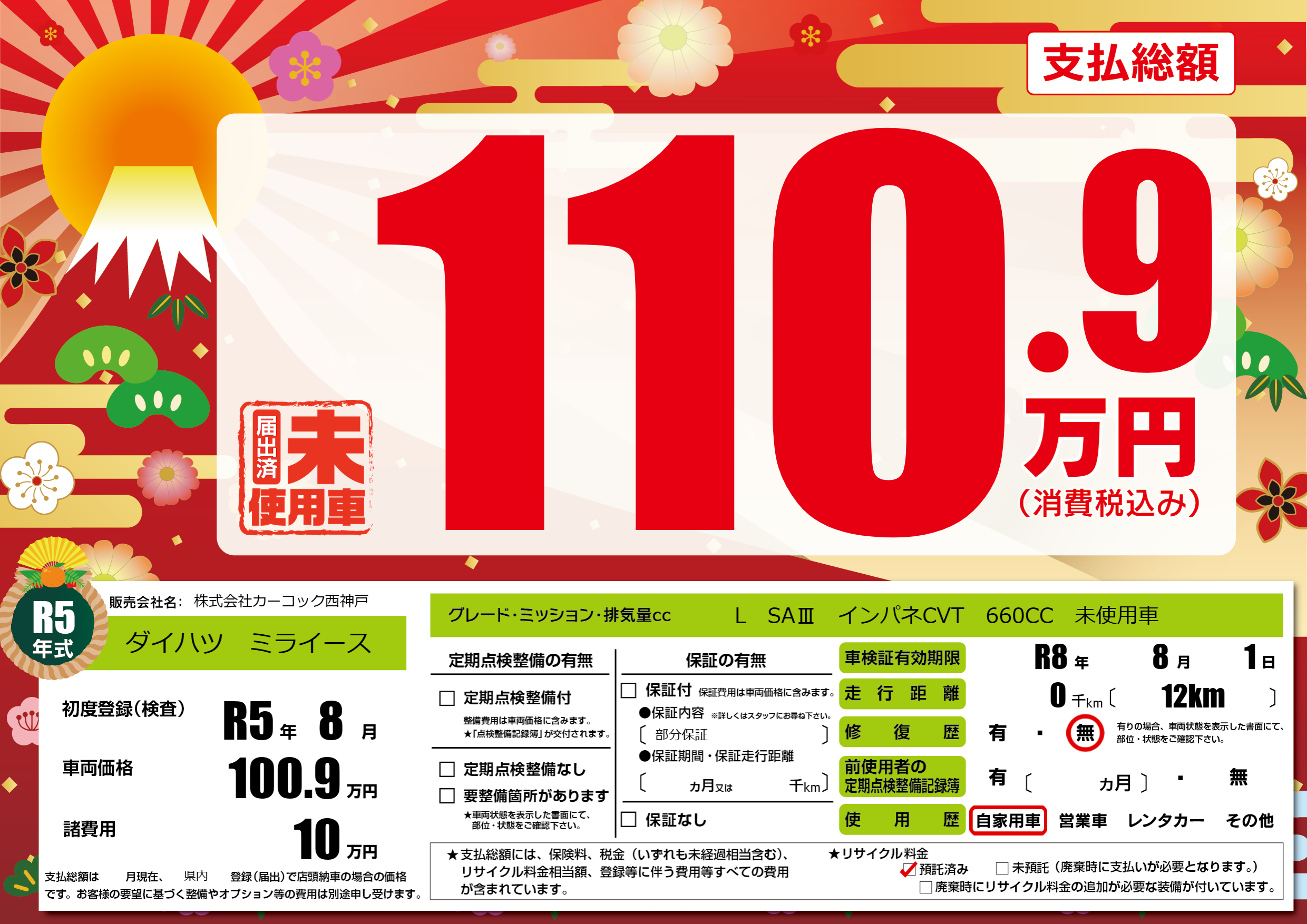 | 走行キロ | - | 初年度登録 | R5年8月 |