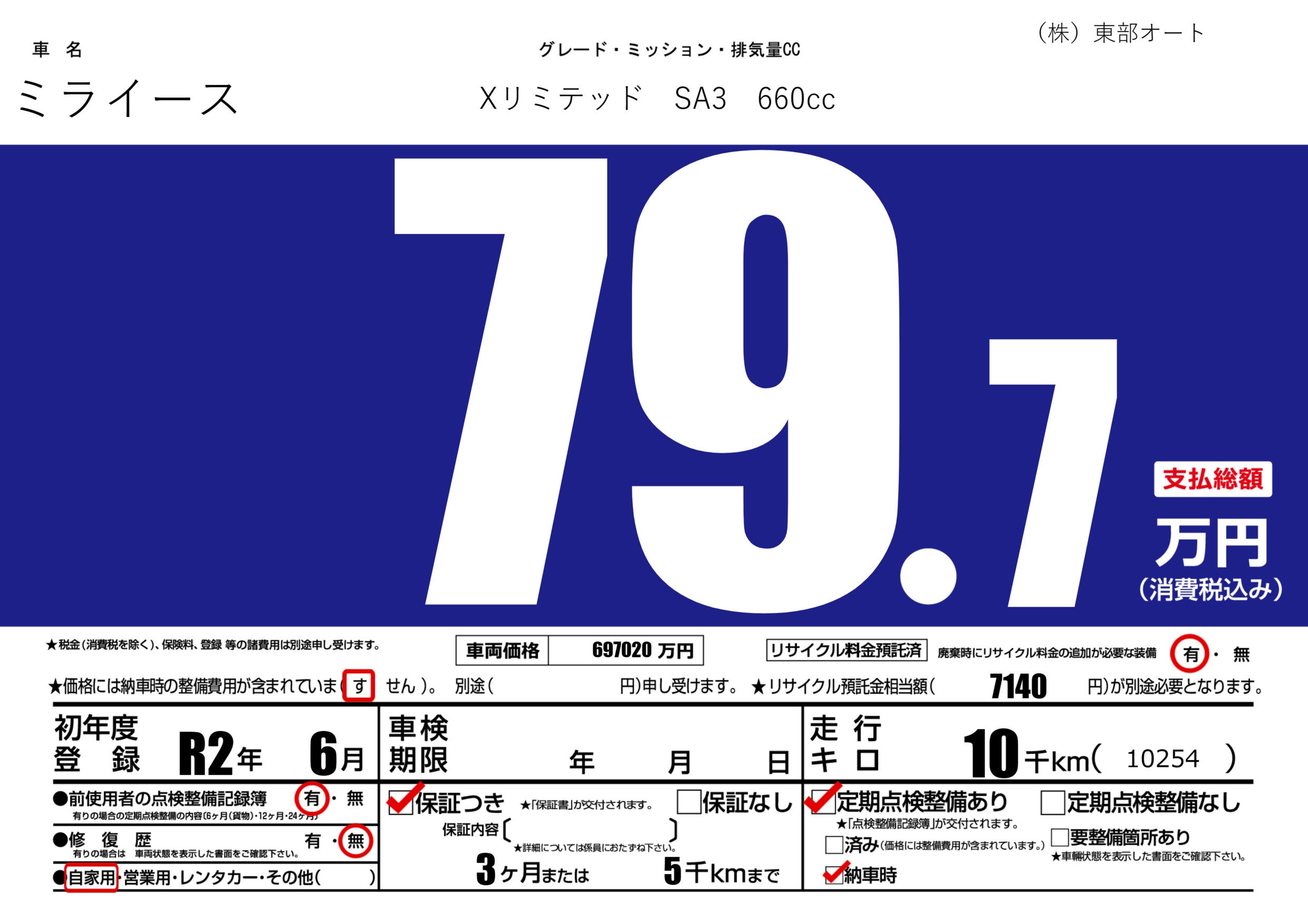 保証付き 保証内容(---) 3ヶ月または(5)千kmまで |