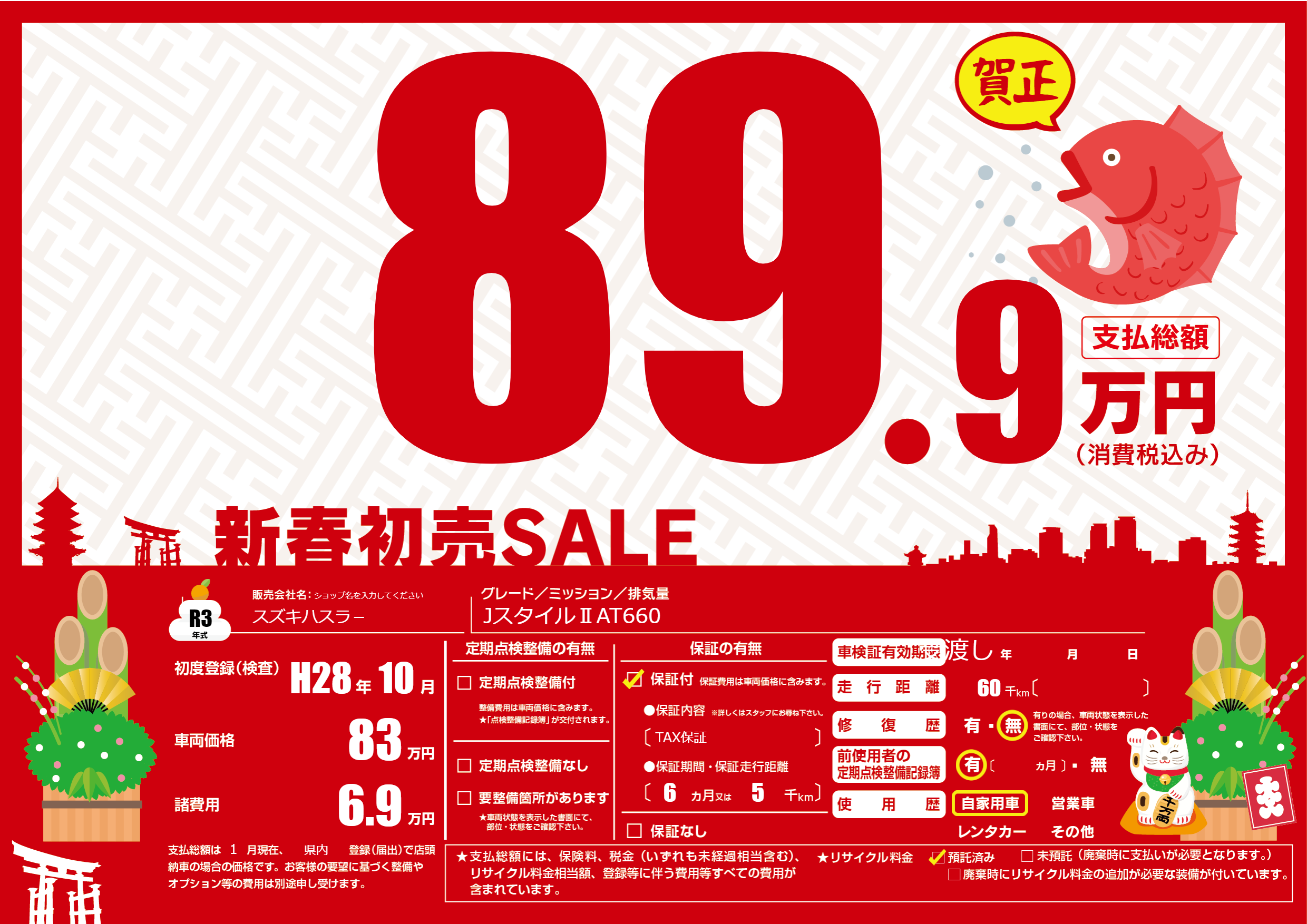保証付き 保証内容(TAX保証) 6ヶ月または(5)千kmまで |