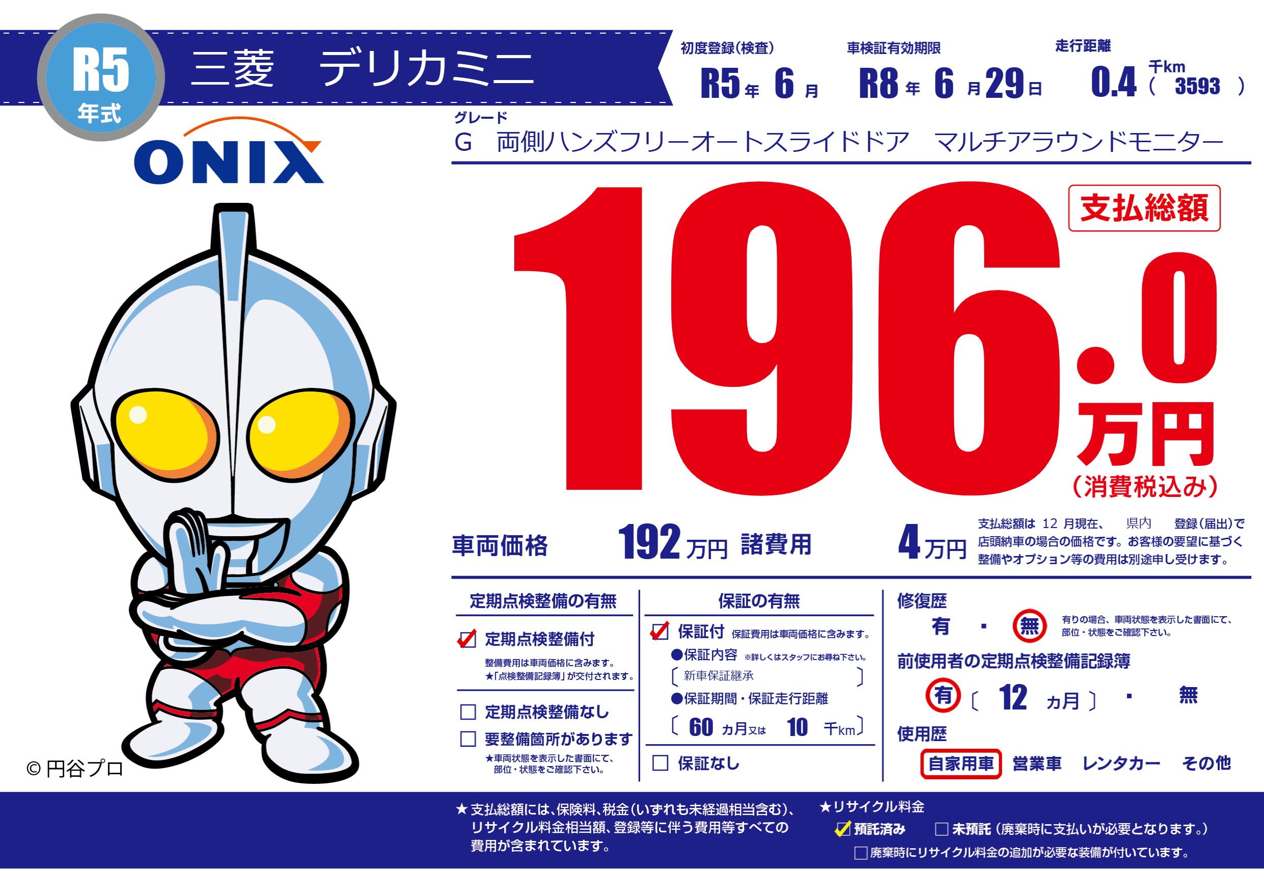 | 車名 | 三菱 デリカミニ | グレード ミッション 排気量 |