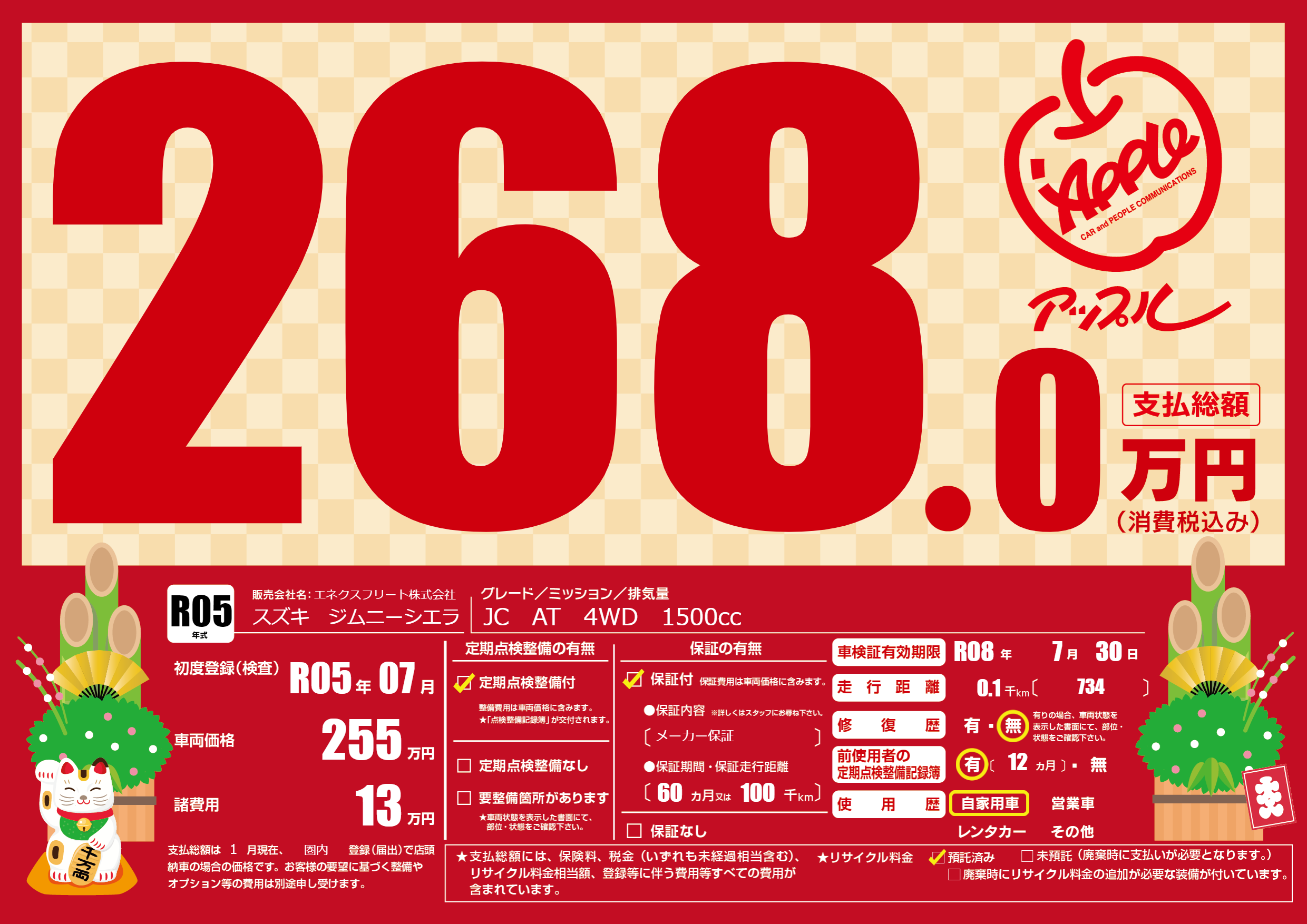 | 走行キロ | - | 初年度登録 | R05年07月 |