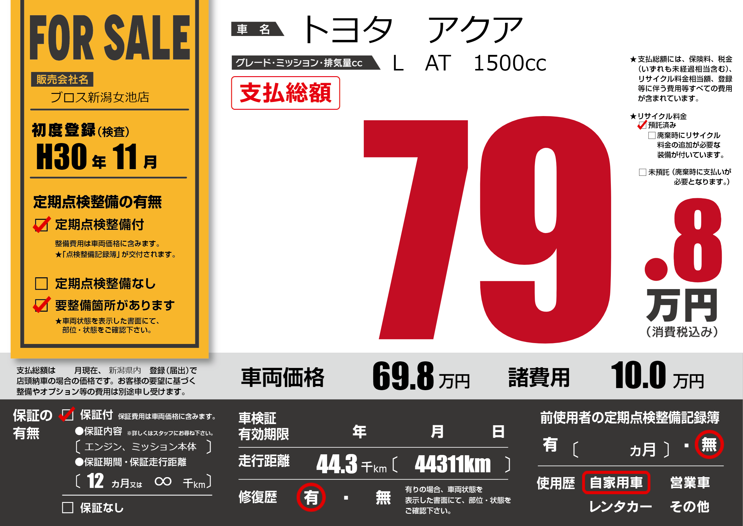 | 定期点検整備 | 定期点検整備あり 要整備箇所あり | ||