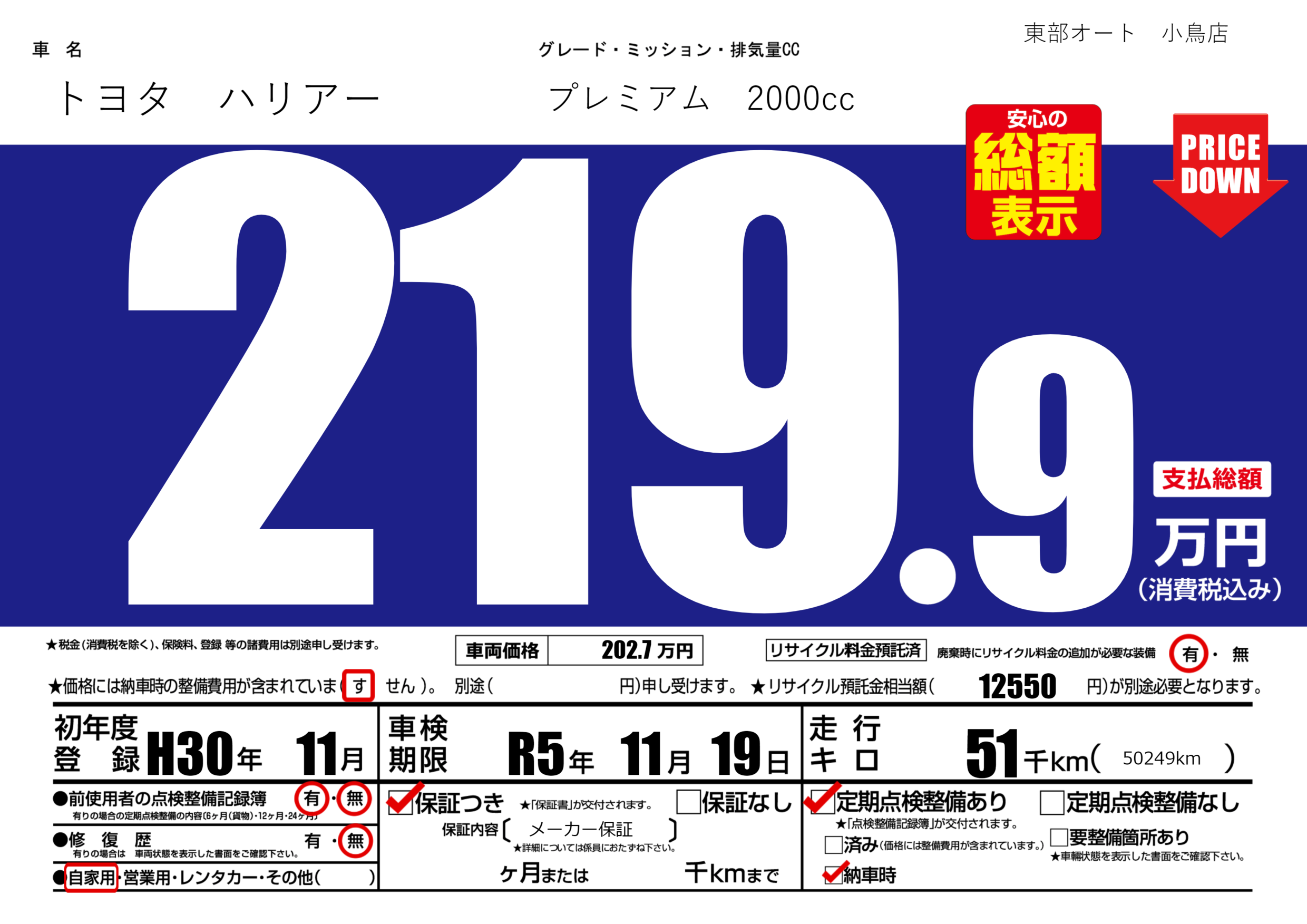 あり | リサイクル預託金相当額 | ( 12550円)が別途必要 |