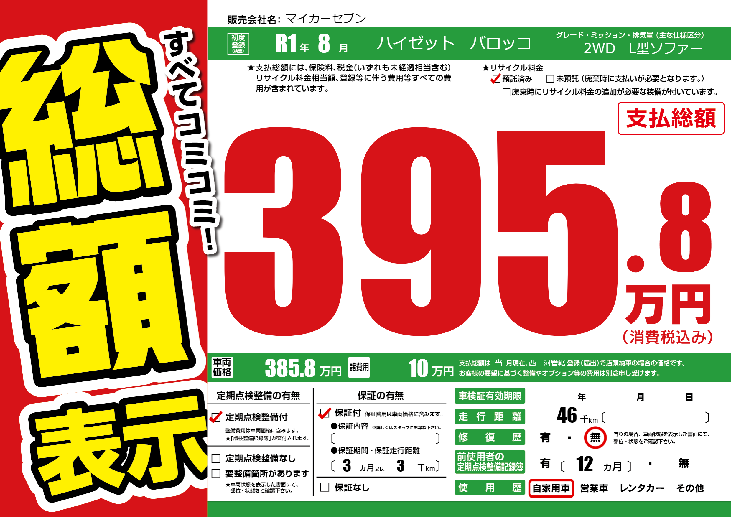 | 車名 | ハイゼット バロッコ | グレード ミッション 排気量 |