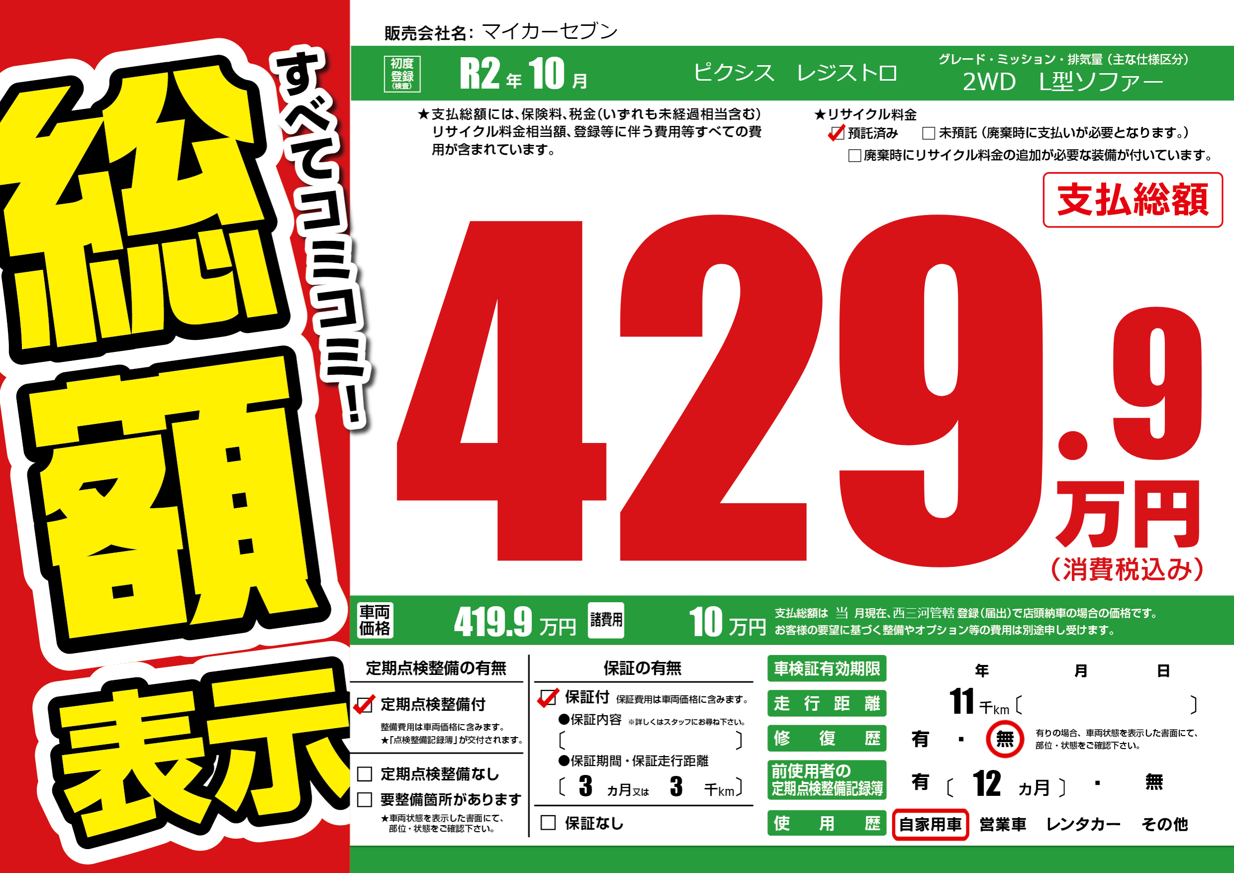 | 定期点検整備 | 定期点検整備あり | ||